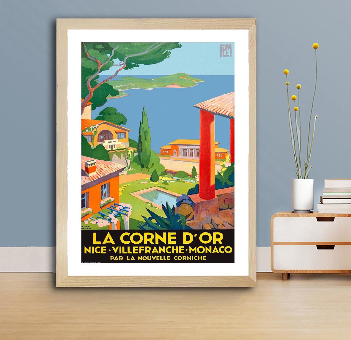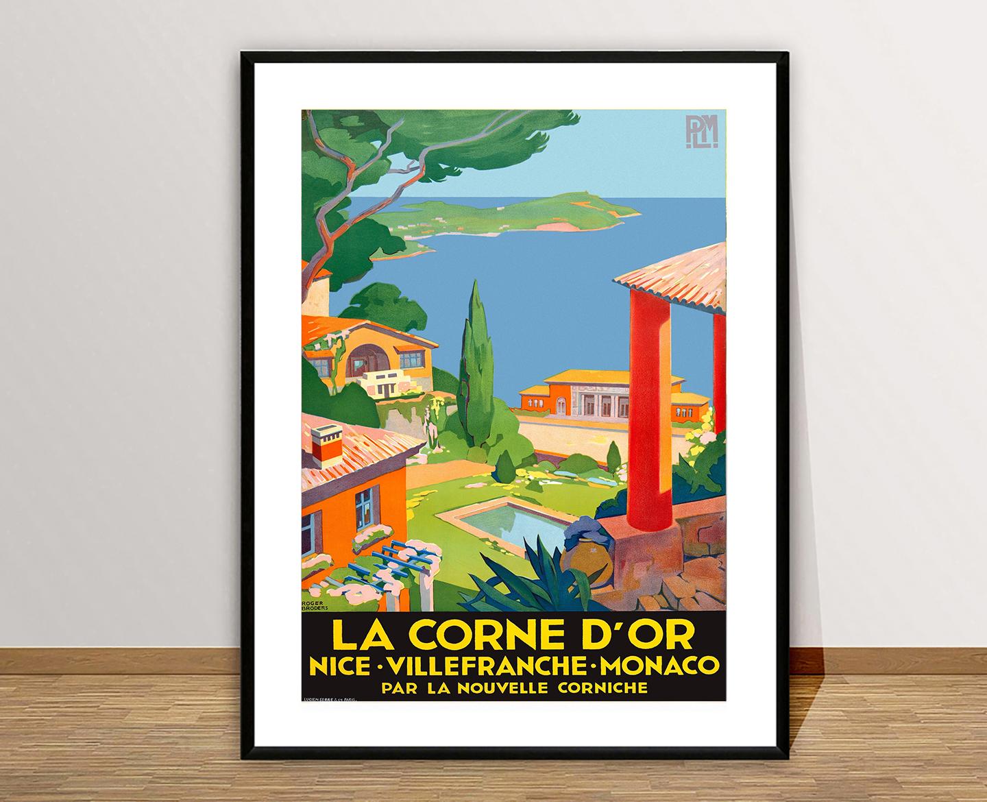 La Corne d'Or, Nice, Villefranche, Monaco Vintage Travel Poster - Poster Paper, Canvas Print / Gift Idea / Wall Decor