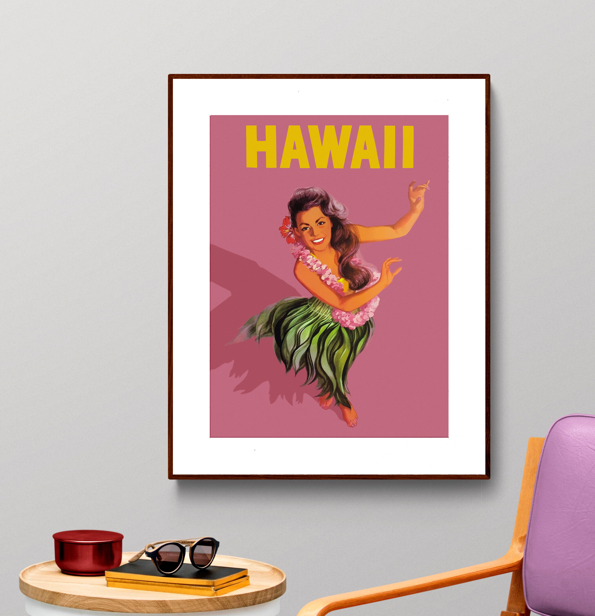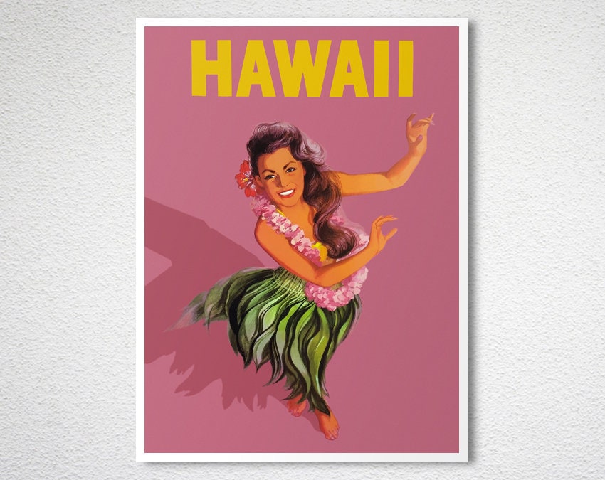 Hawaii Hula Girl Vintage Travel Poster: Retro Art Print