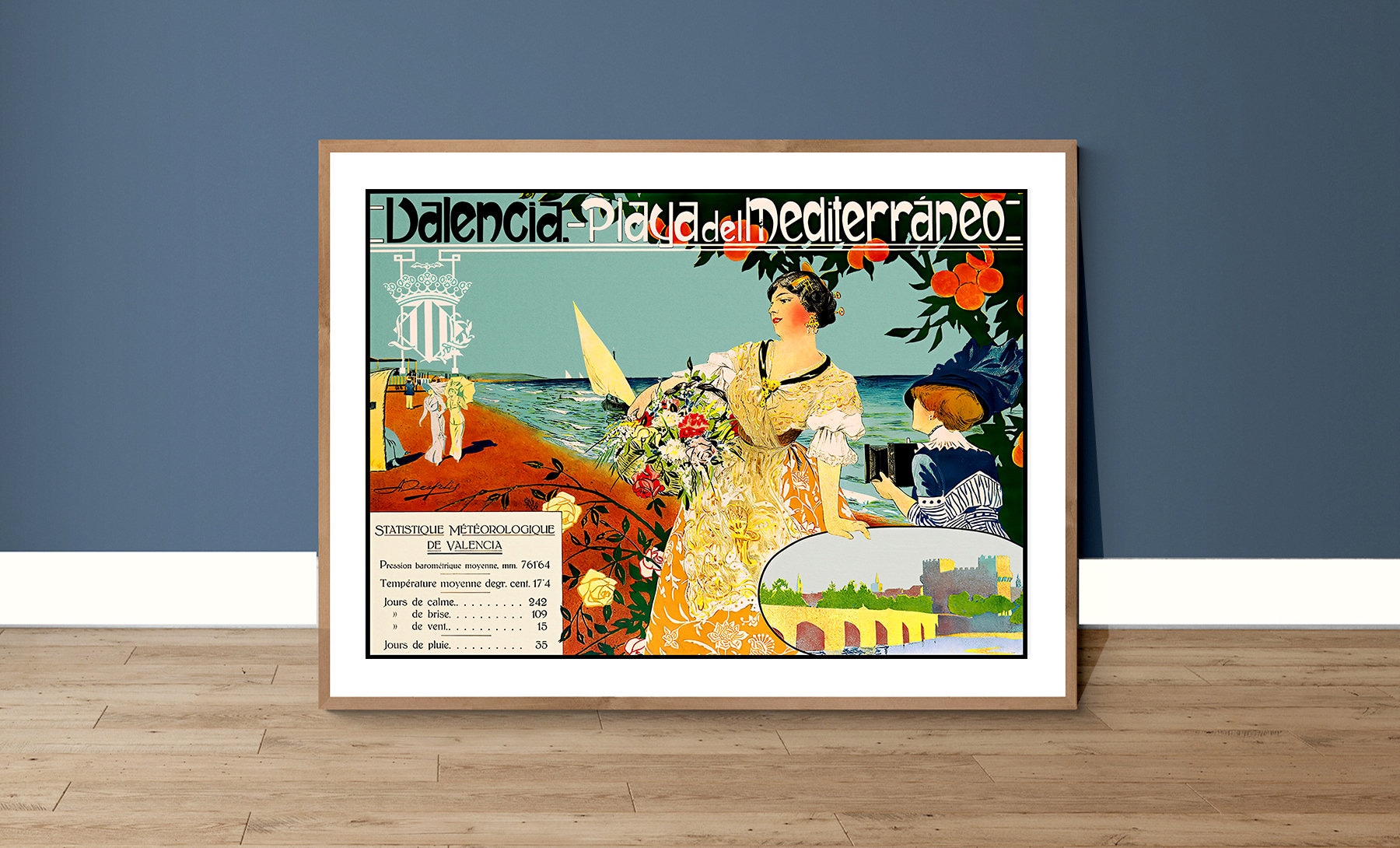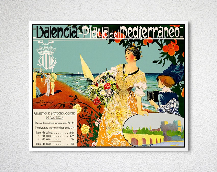 Valencia Spain Vintage Travel Poster: Playa del Mediterraneo Art Print