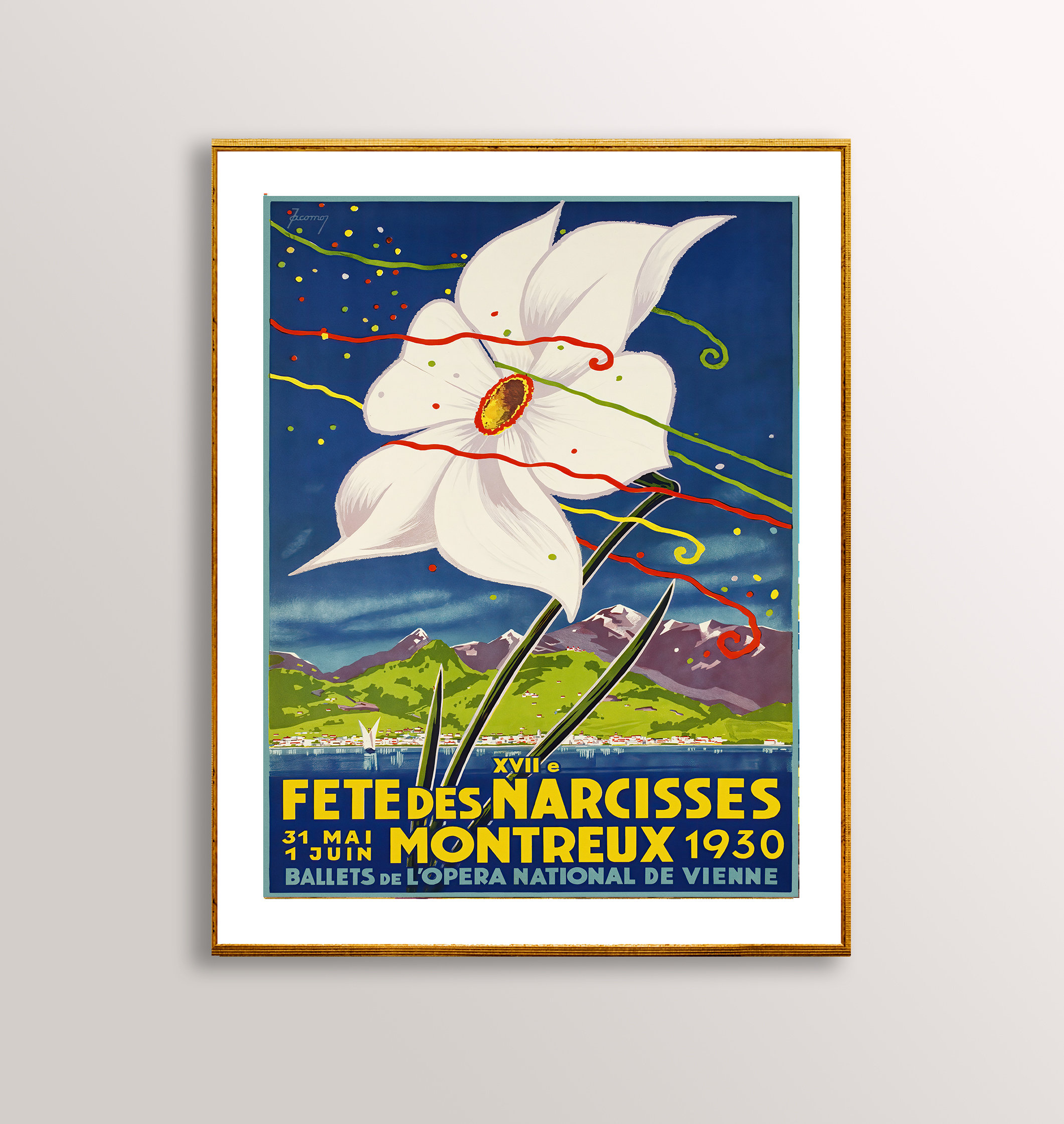 Montreux Narcissus Festival 1930 Vintage Travel Poster