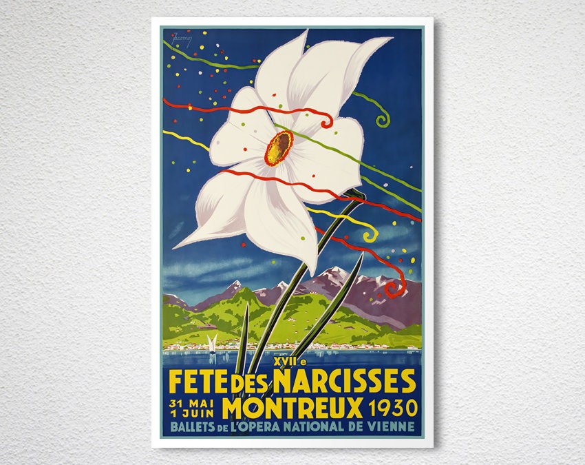 Fete des Narcisses Montreux, 1930 Vintage Travel Poster - Poster Paper or Canvas Print / Gift Idea