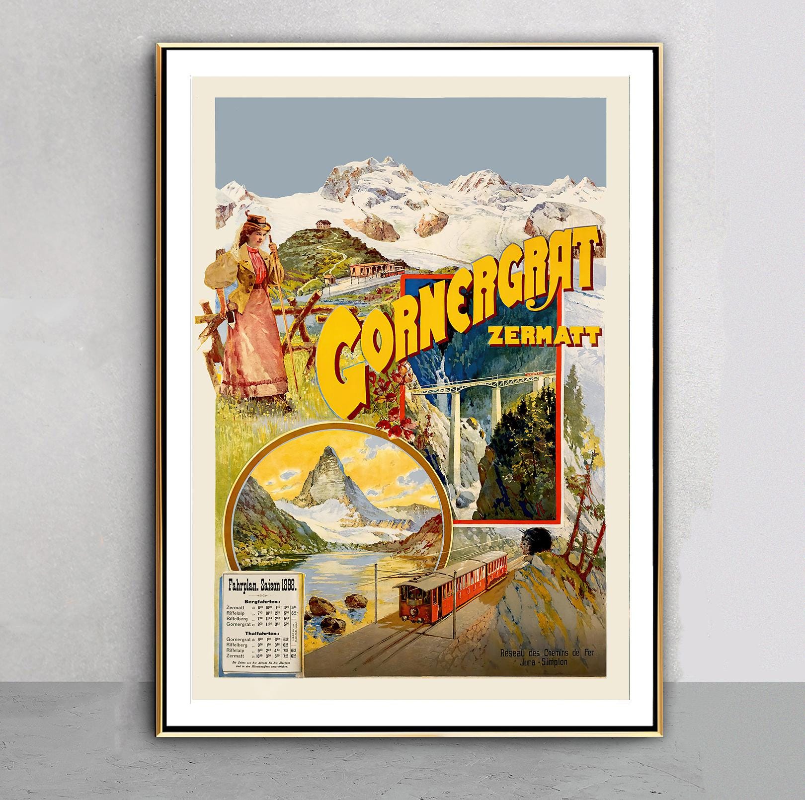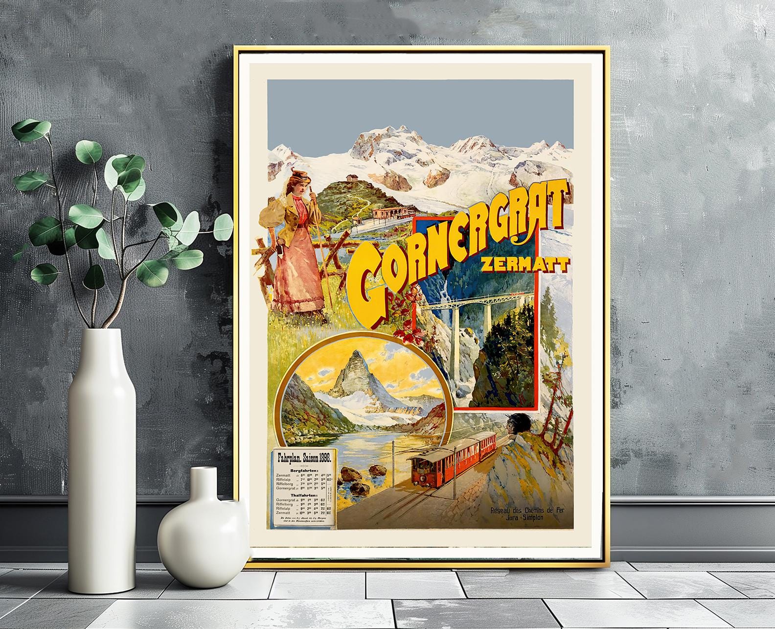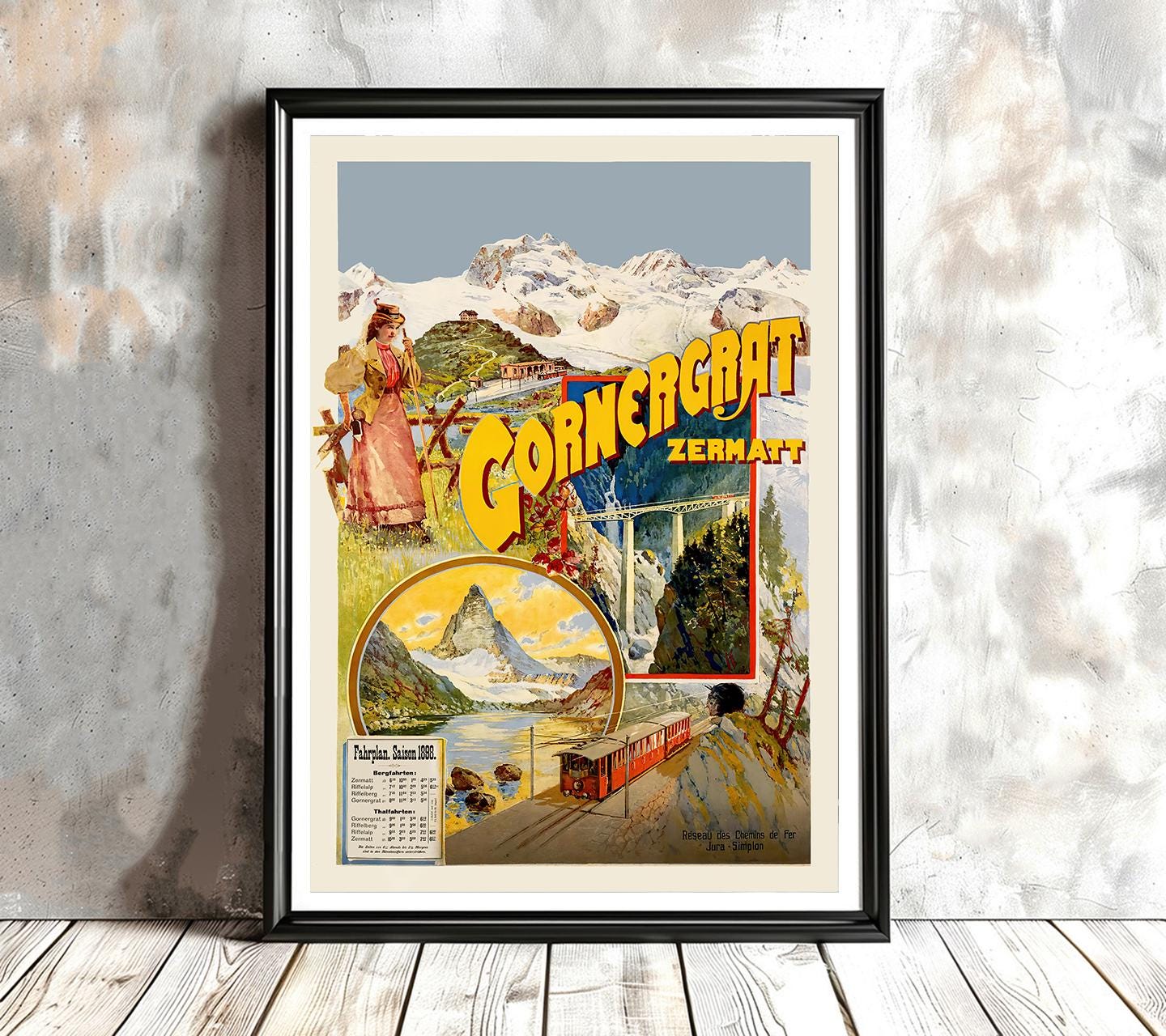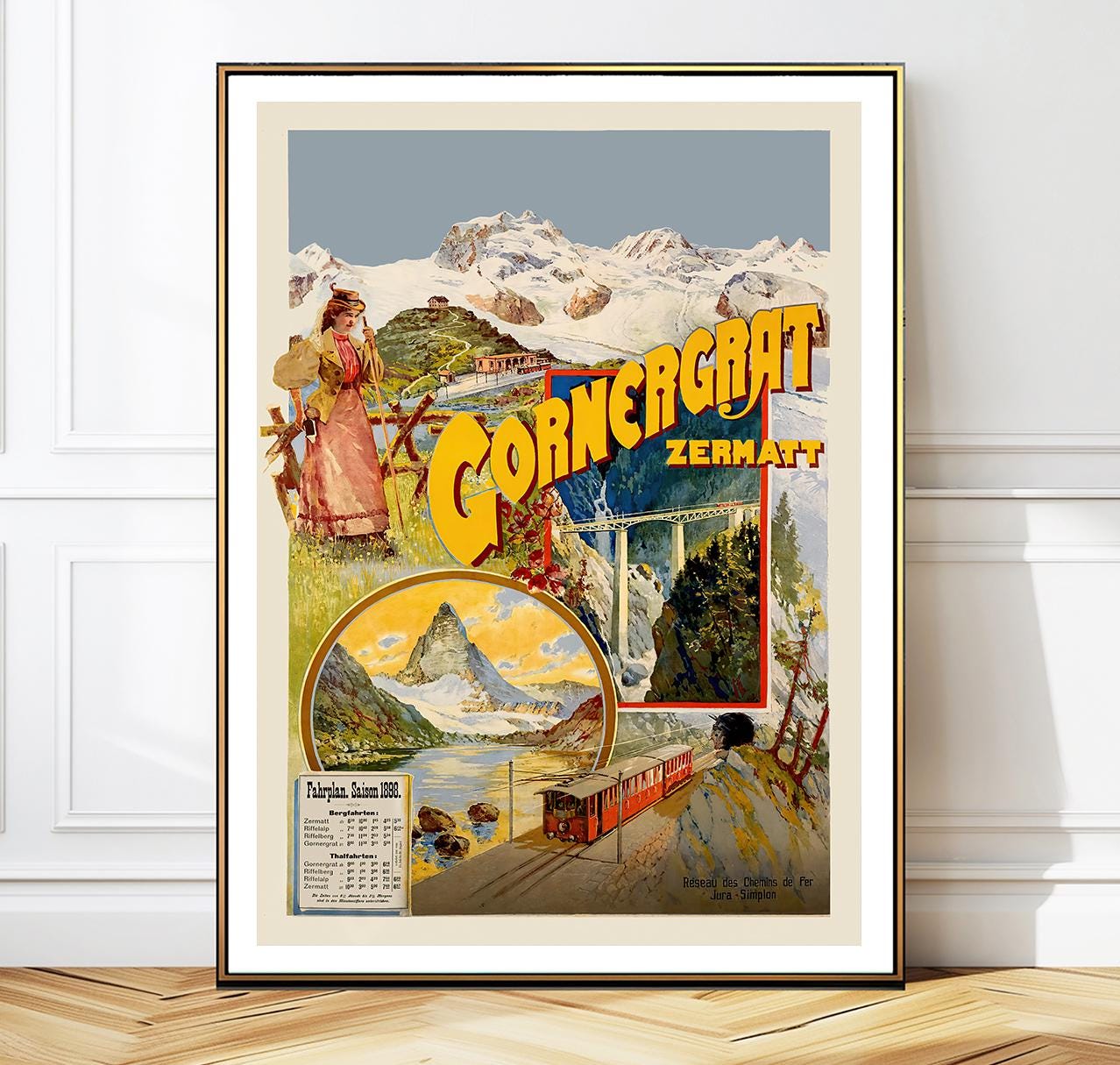 Vintage Gornergrat Zermatt Travel Poster: Swiss Alps Print