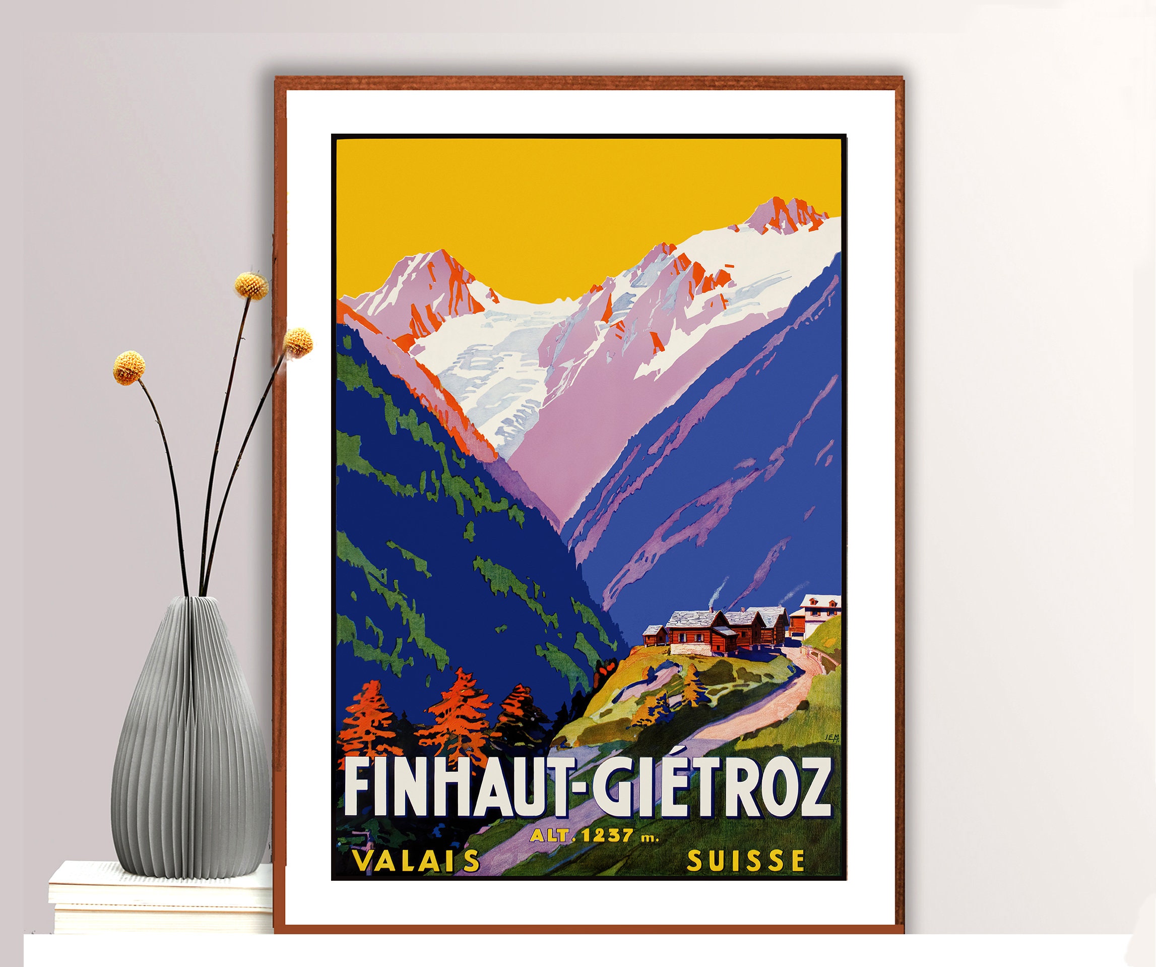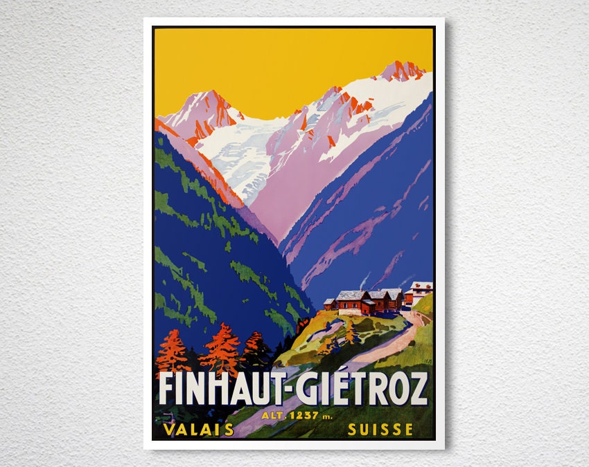 Finhaut-Gietroz Suisse Vintage Travel Poster - Poster Paper or Canvas Giclee Print / Gift Idea