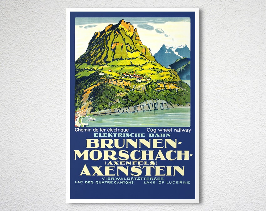 Brunnen Morschach Axenstein Suisse Vintage Travel Poster - Poster Paper or Canvas Print / Gift Idea