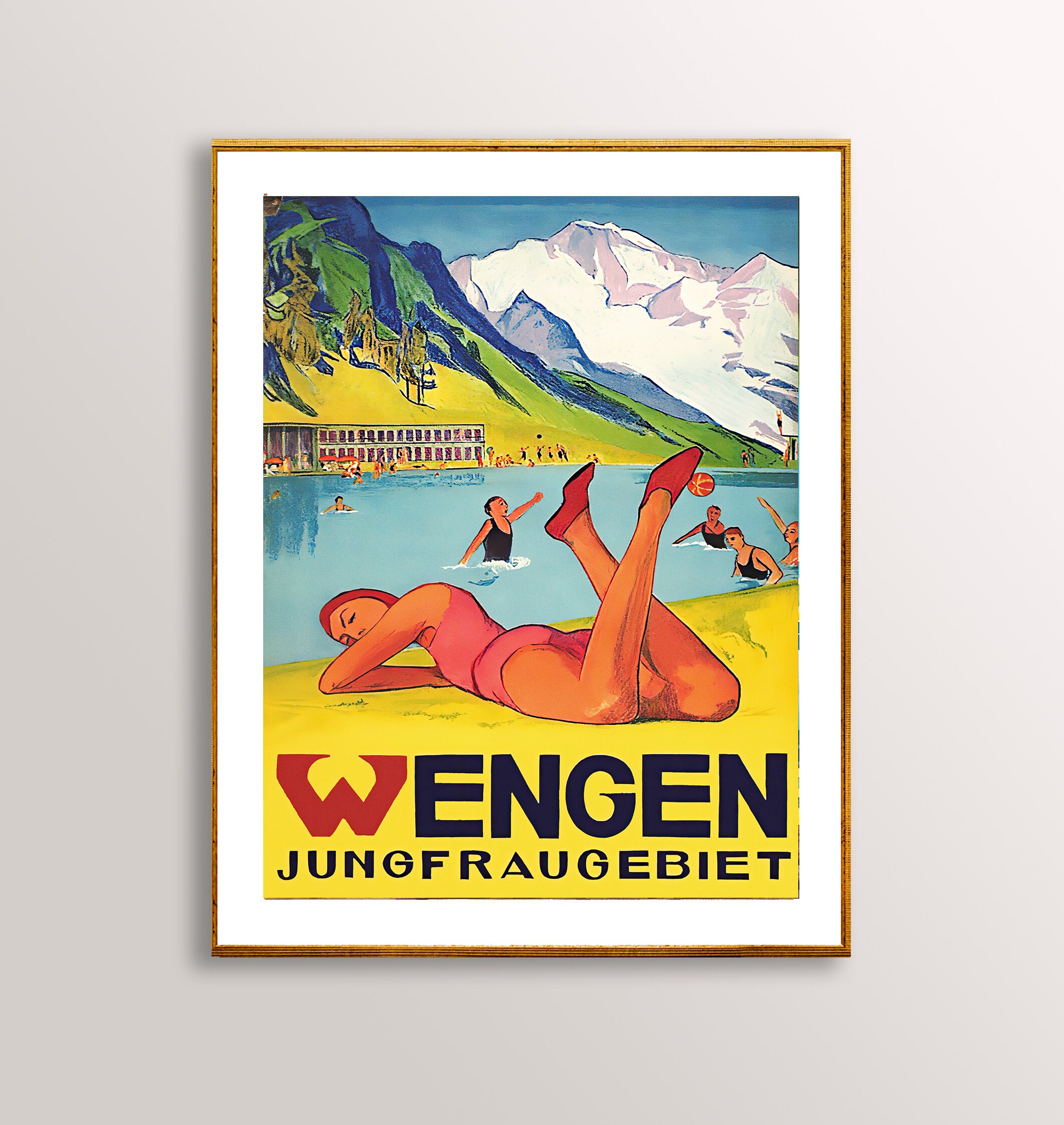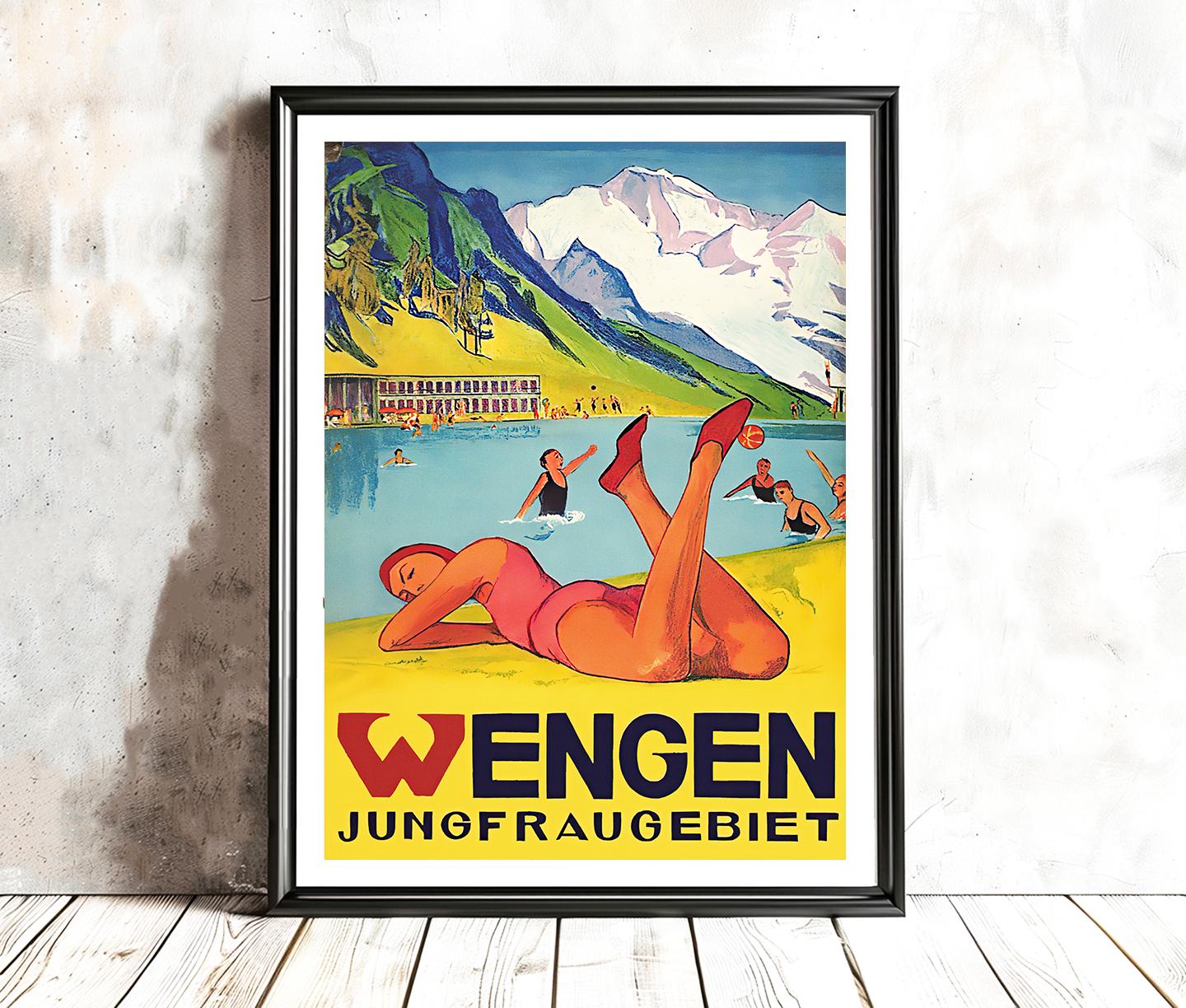 Wengen Jungfraugebiet Switzerland Vintage Travel Poster - Poster Paper or Canvas Print