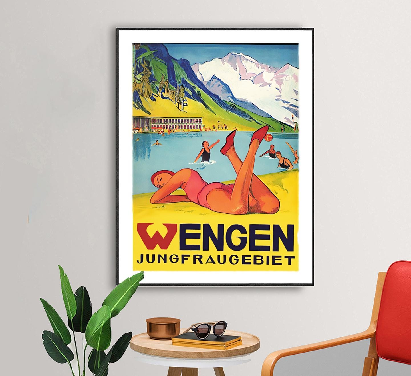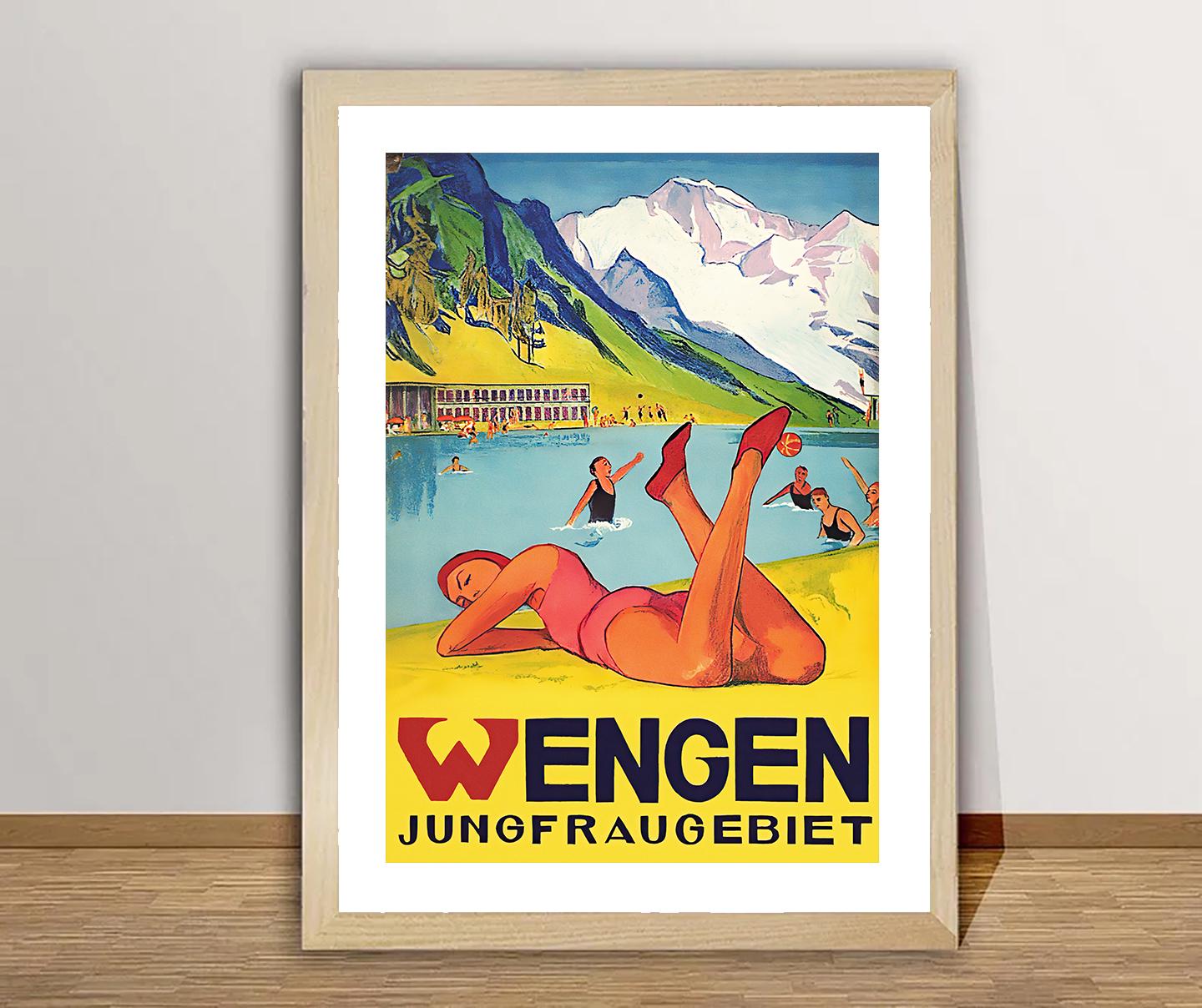 Wengen Switzerland Vintage Travel Poster: Jungfraugebiet Art Print