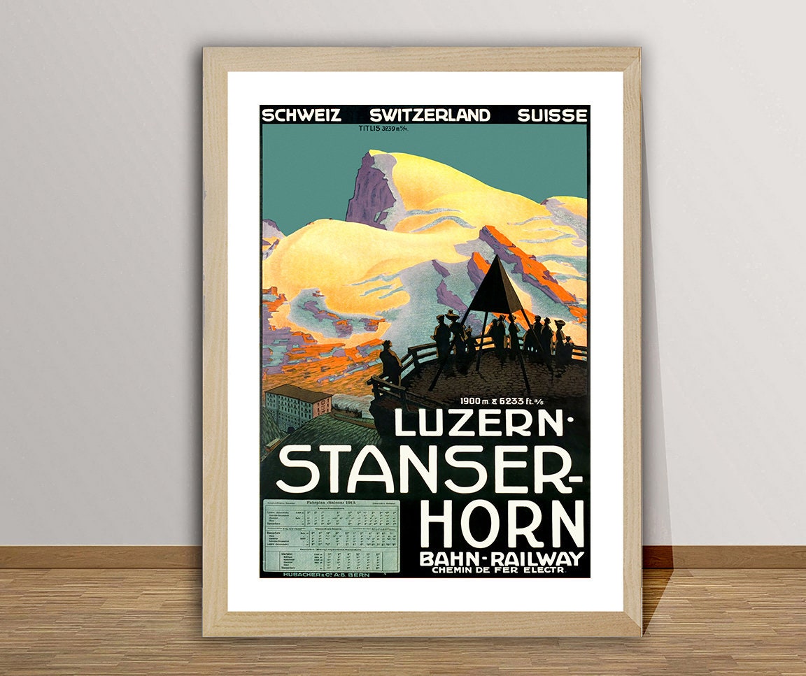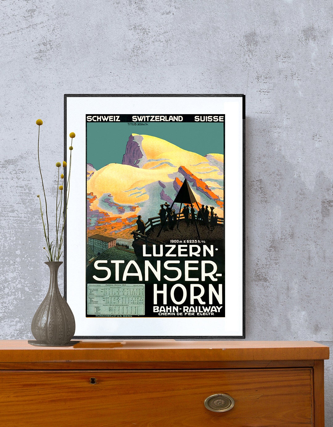 Luzern Stanserhorn Switzerland Vintage Travel Poster - Poster Paper or Canvas Print