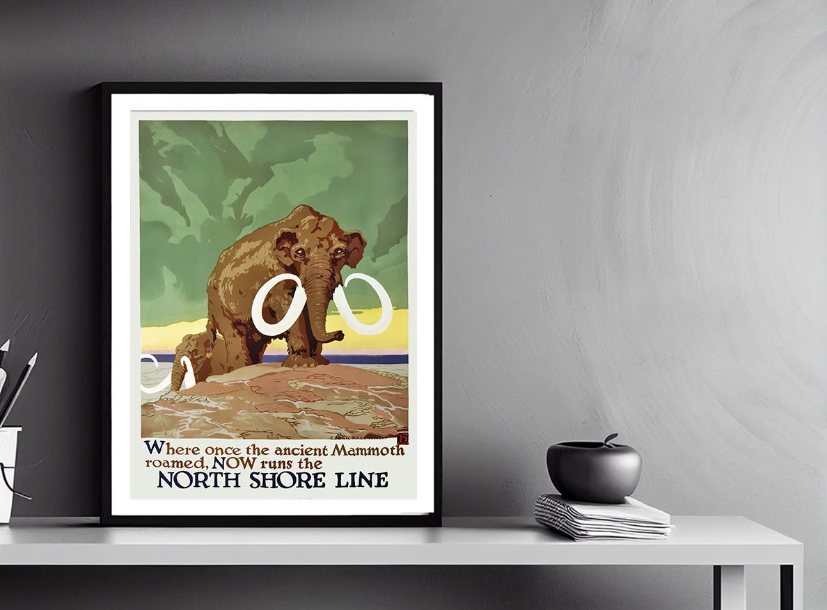 Vintage Ancient Mommoth Roamed Now Runs Advertisement (1925) Art Print, Reproduction of a Retro Artwork, Decorative Purposes Wall Decor - Poster Paper or Canvas Print / Gift Idea