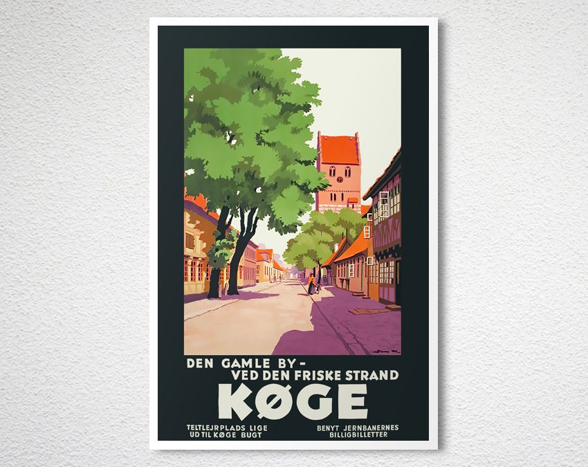 Køge Denmark Vintage Travel Poster - Seaside Town Art Print