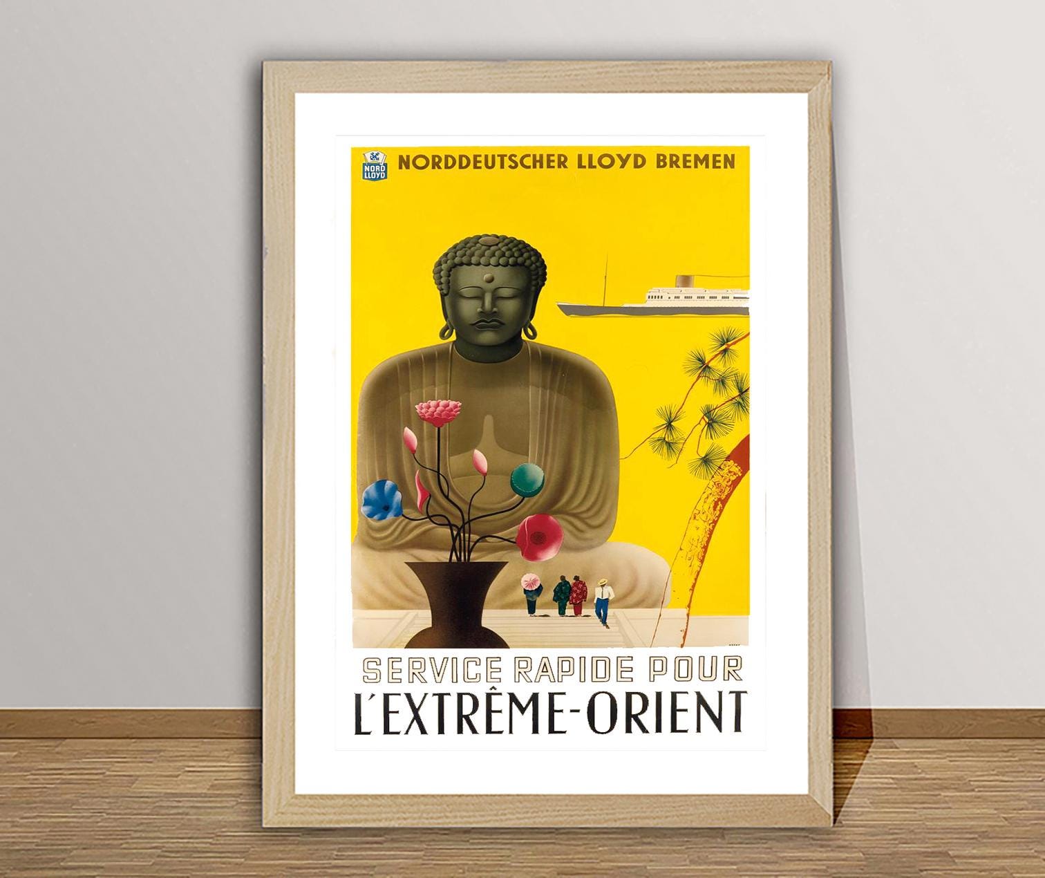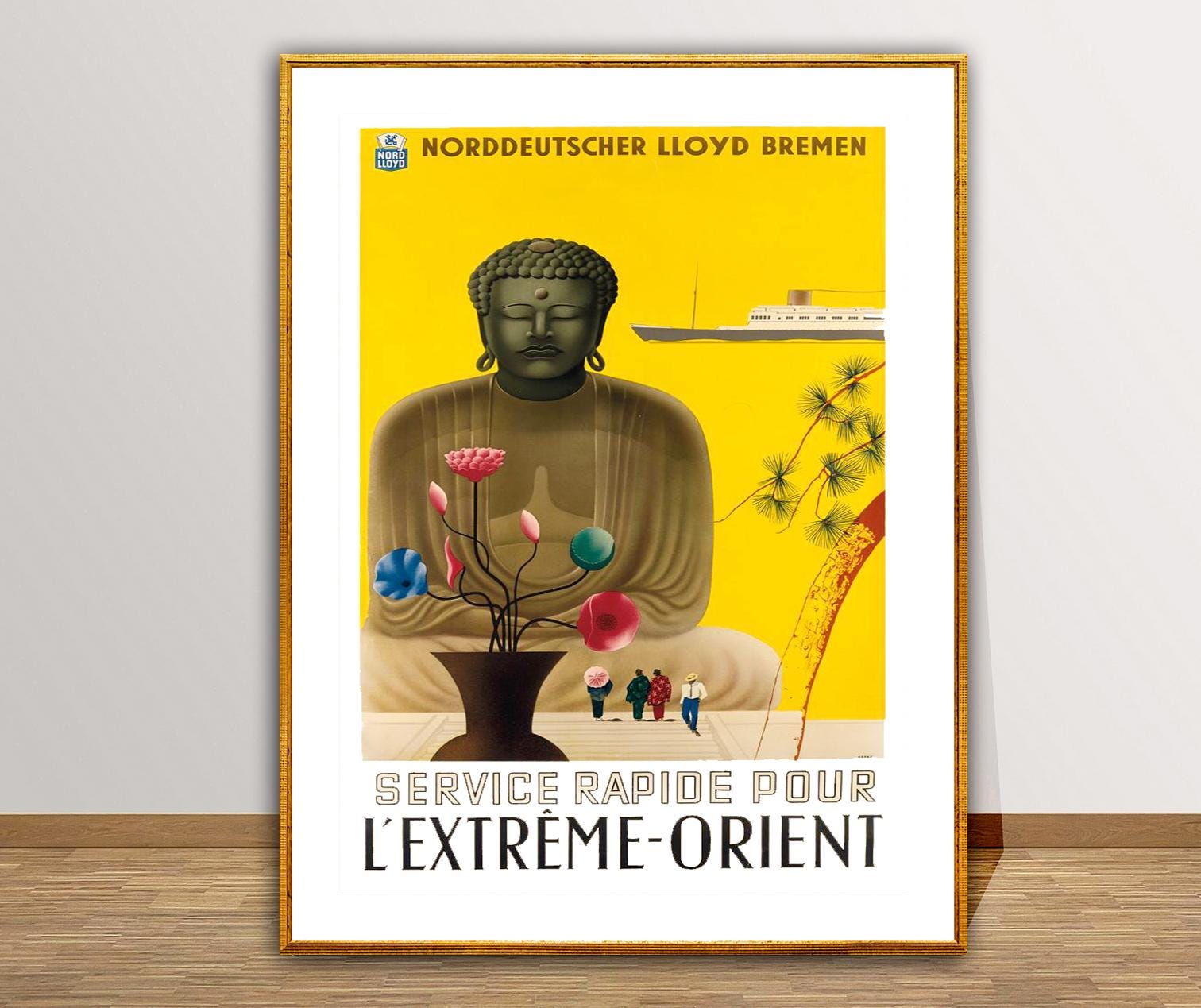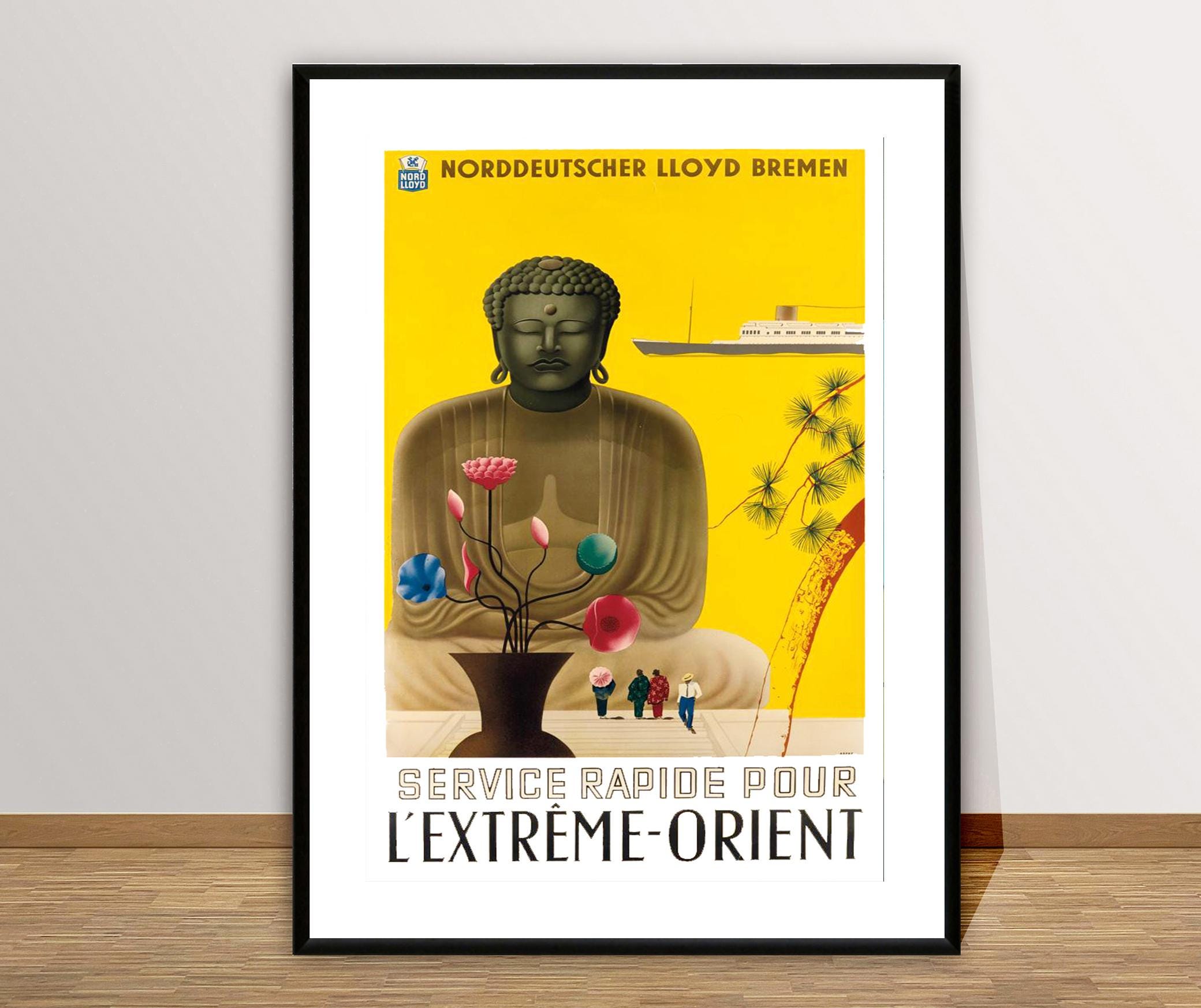 L'Extreme Orient Vintage Travel Poster: Buddha & Ship Art Print
