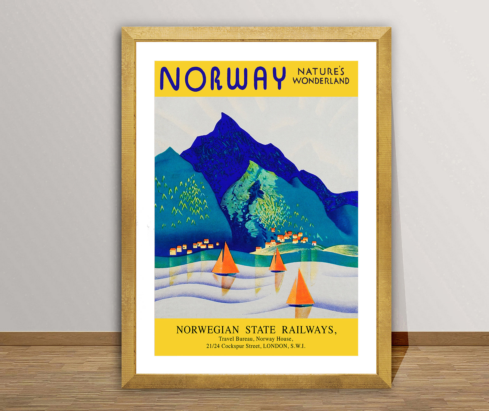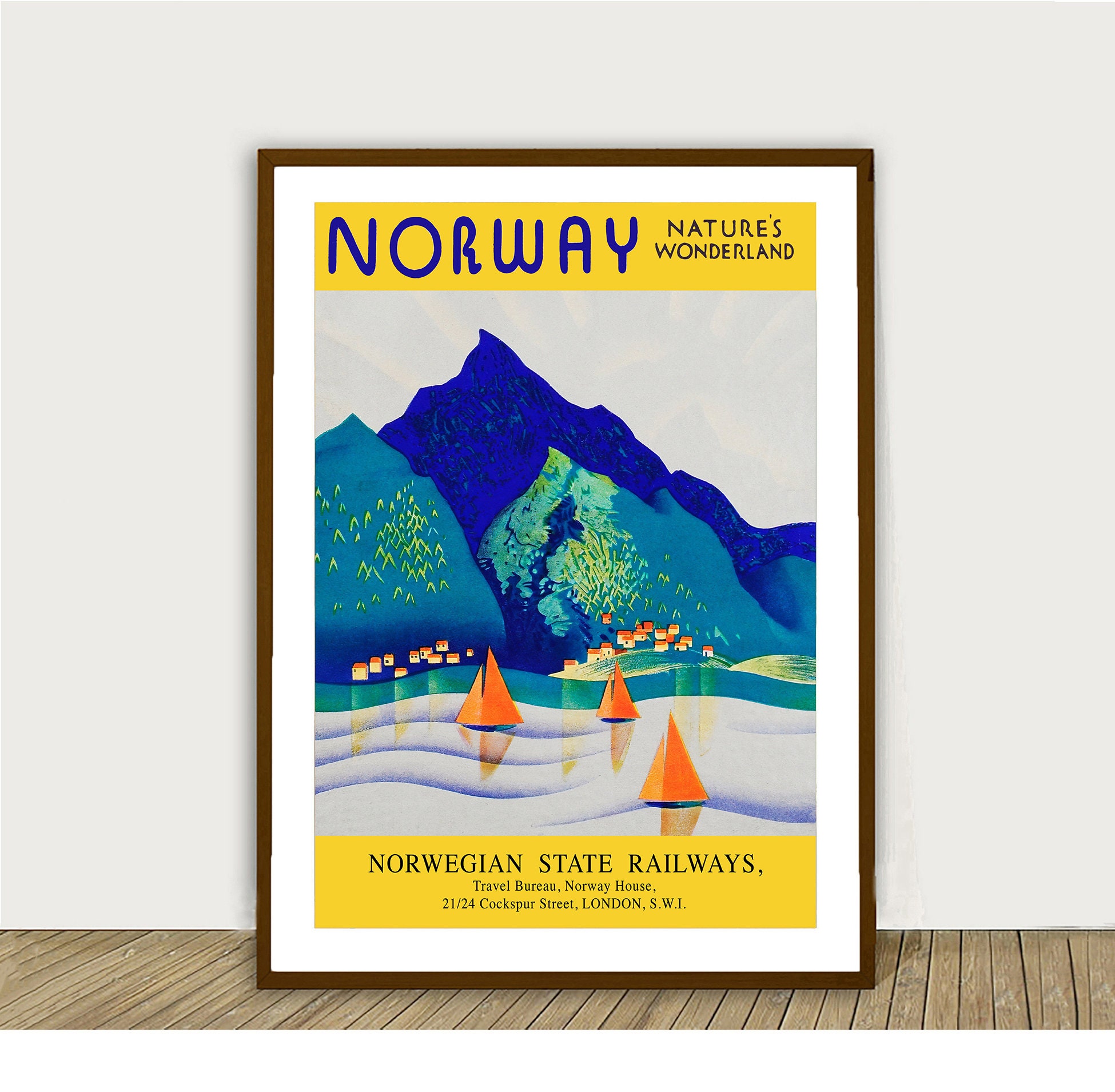 Norway Nature's Wonderland Vintage Travel Poster - Poster Paper or Canvas Print / Gift Idea