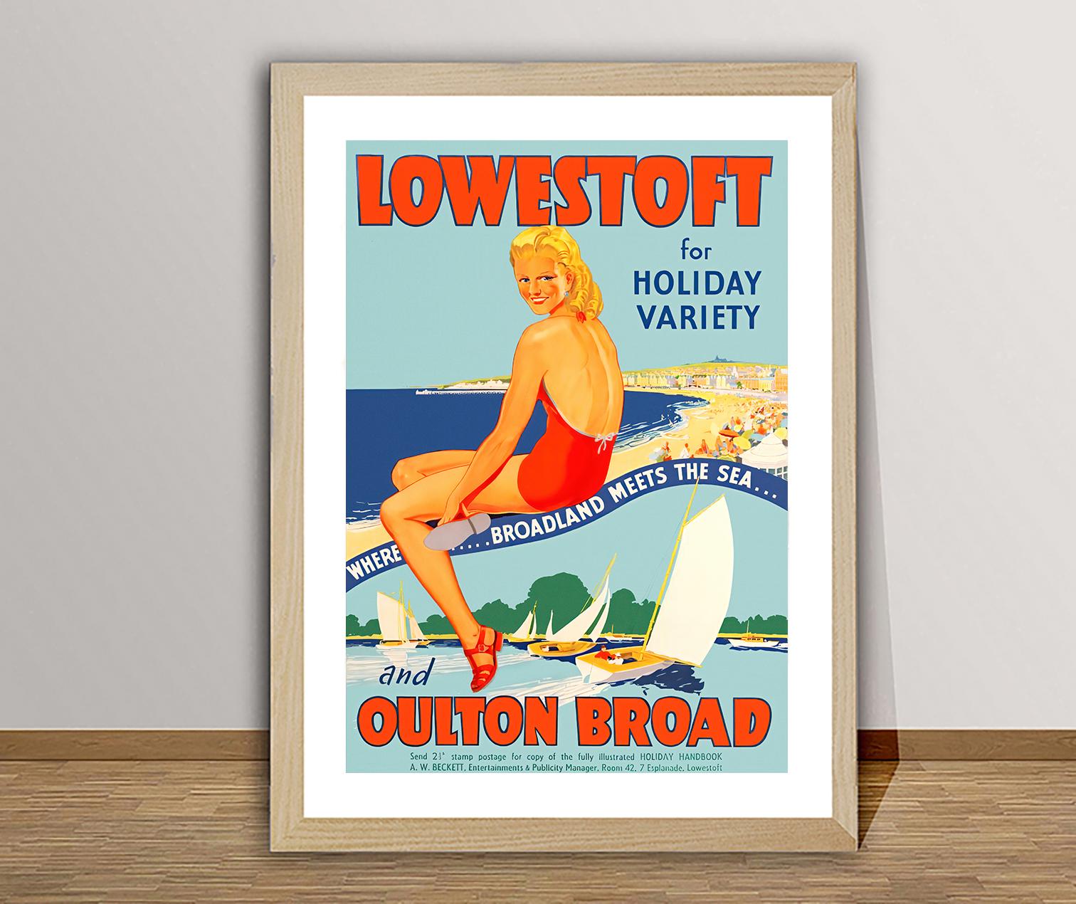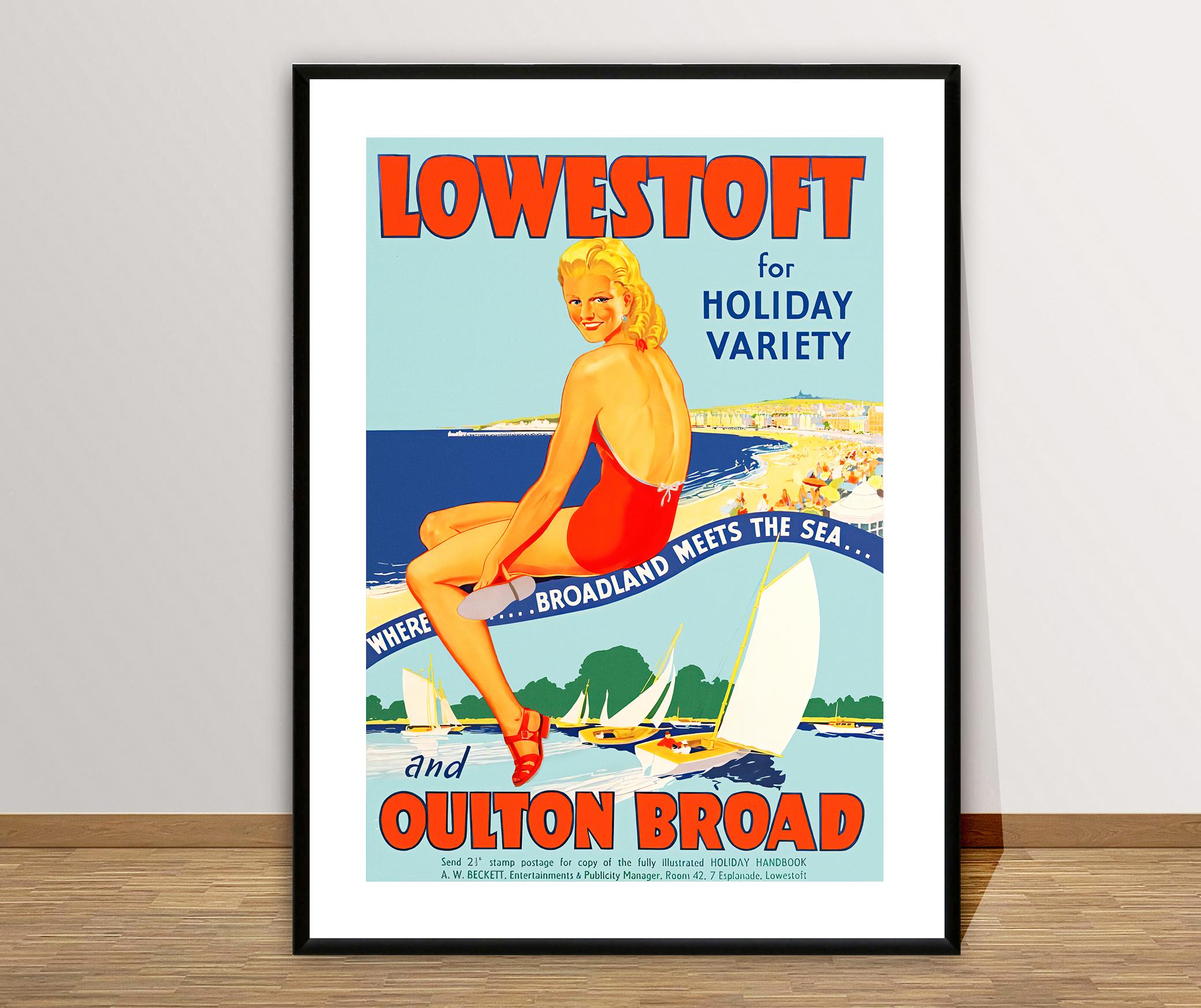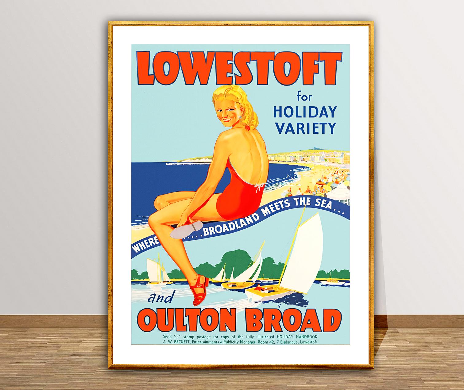 Lowestoft for Holiday Variety and Oulton Broad Vintage Travel Poster - Poster Paper or Canvas Print / Gift Idea
