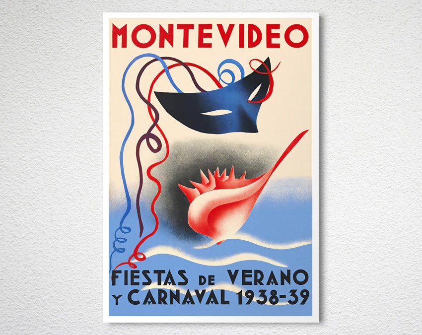 Montevideo Fiestas de Verano y Carnaval, 1938-39 Vintage Travel Poster - Poster Paper or Canvas Print / Gift Idea