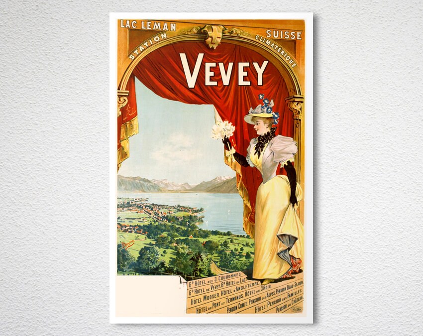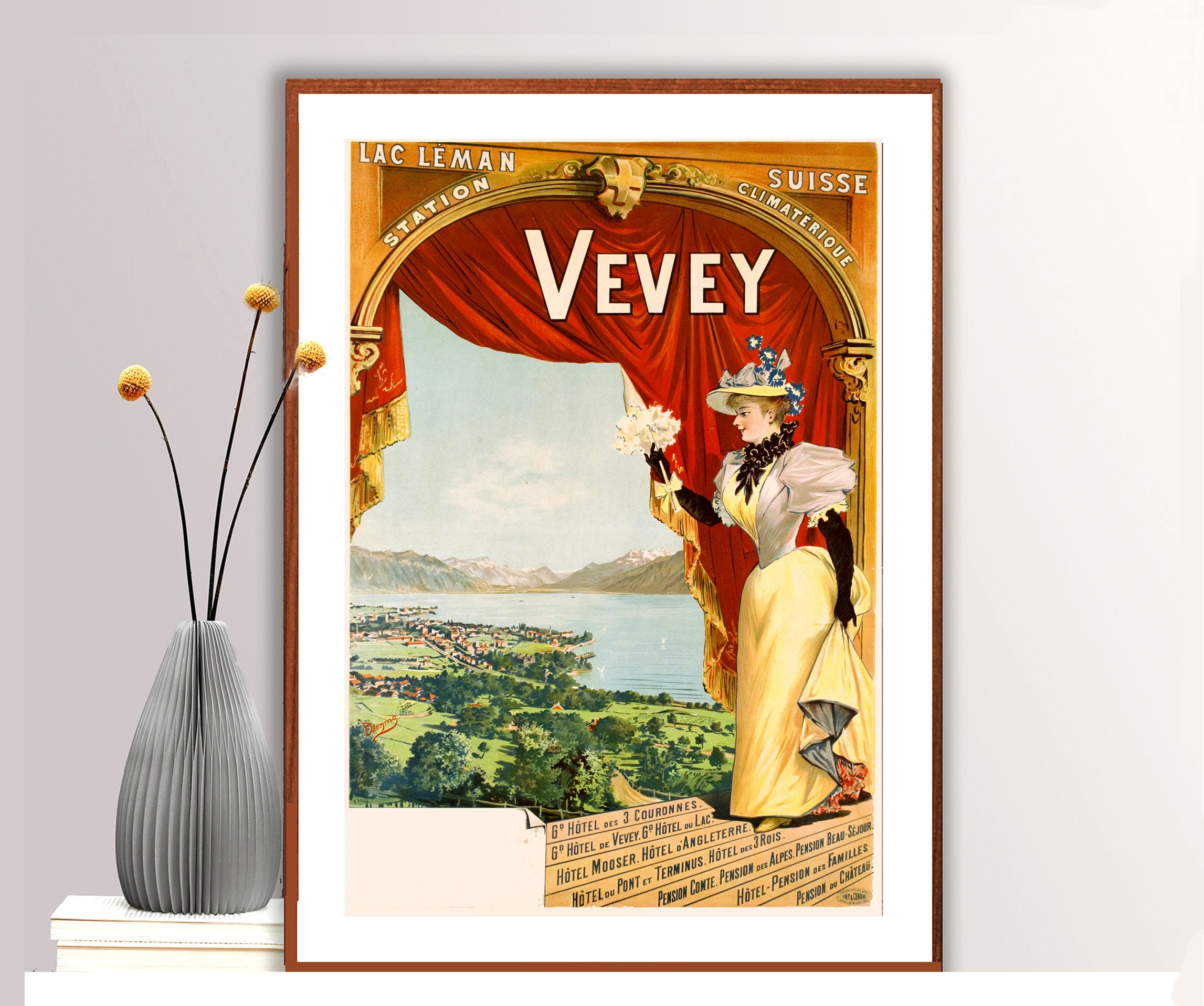 Vevey, Lac Leman Suisse, Switzerland Vintage Travel Poster - Poster Paper or Canvas Print / Gift Idea