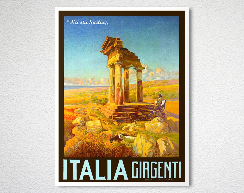 Italia Girgenti Vintage Travel Poster - Poster Paper or Canvas Print / Gift Idea