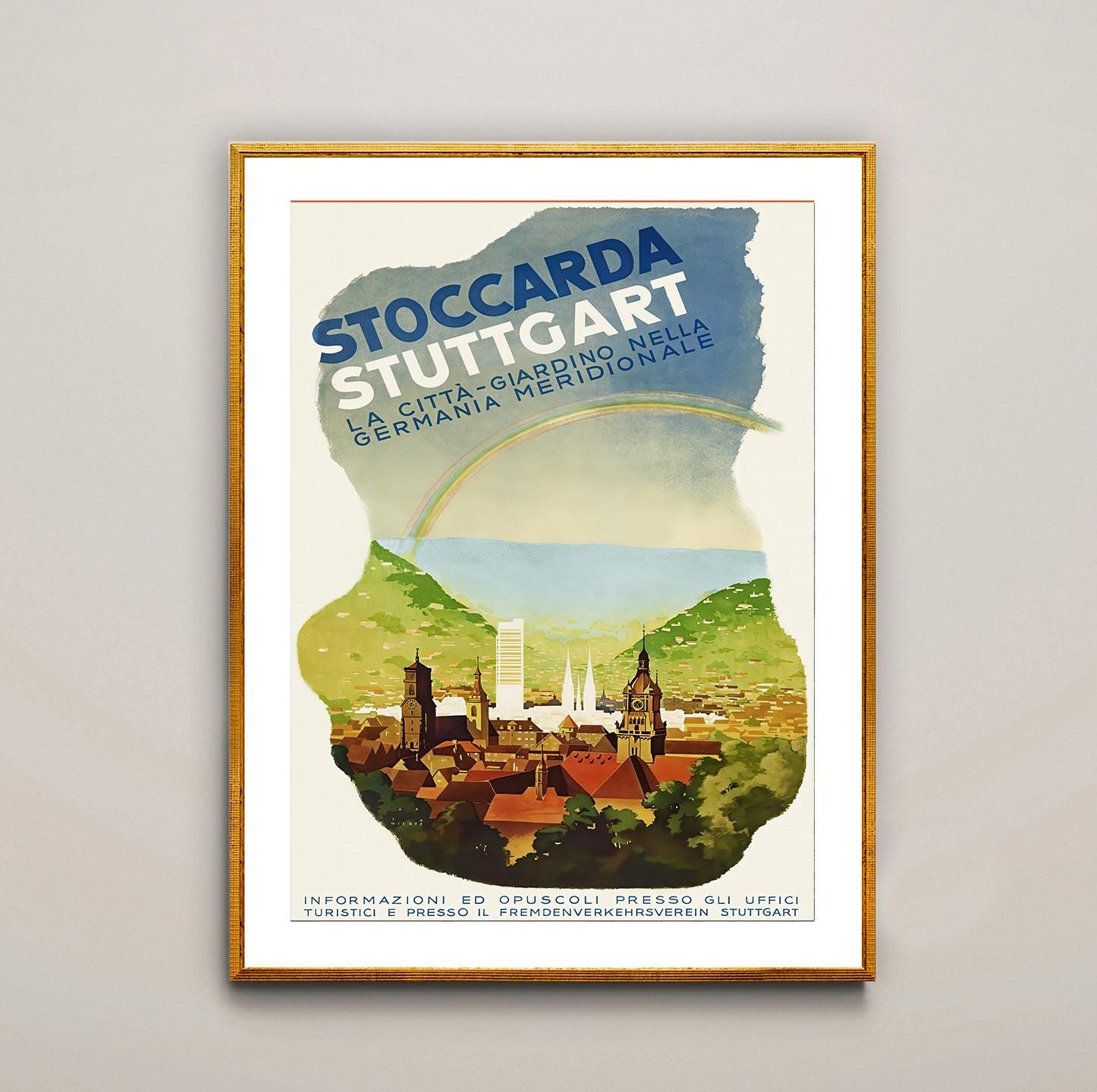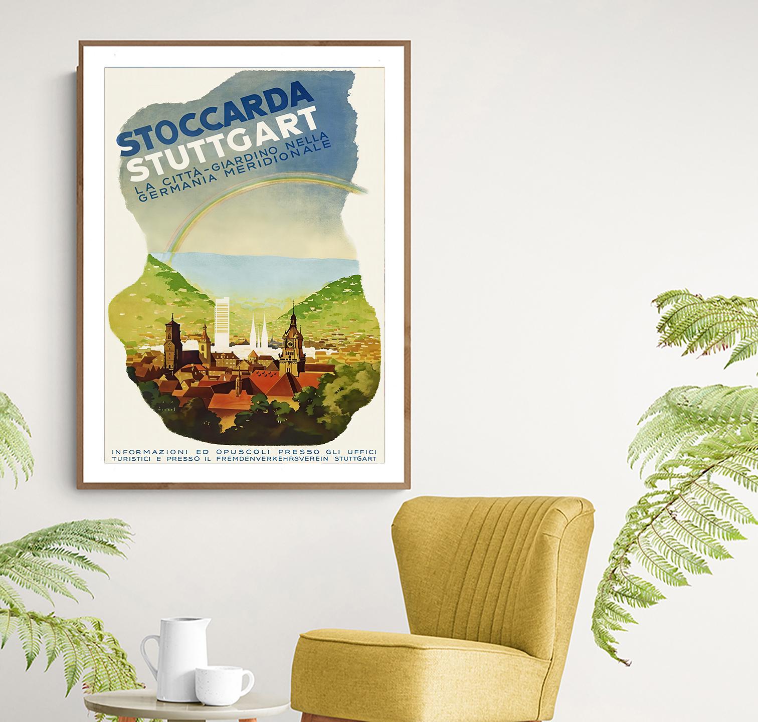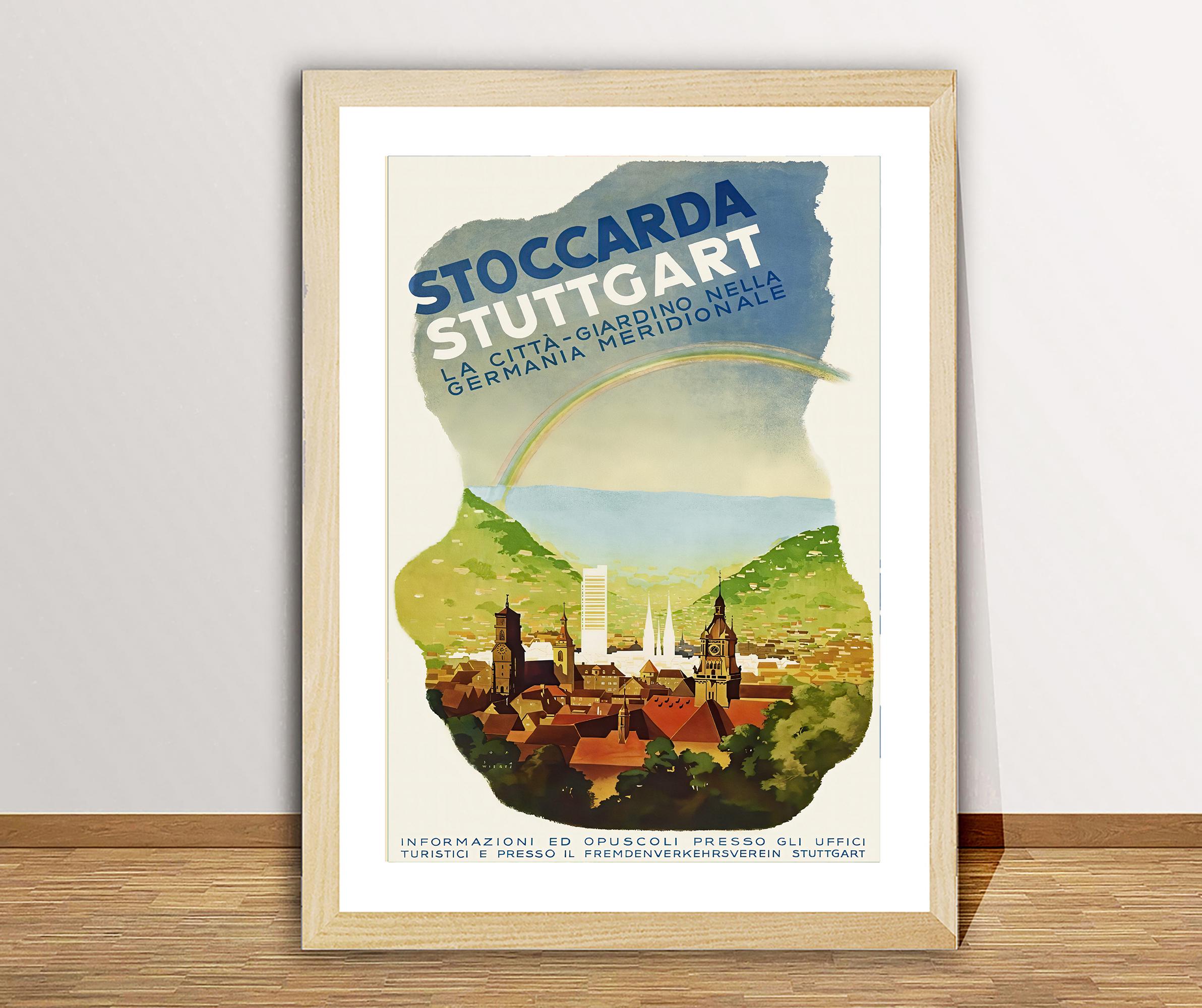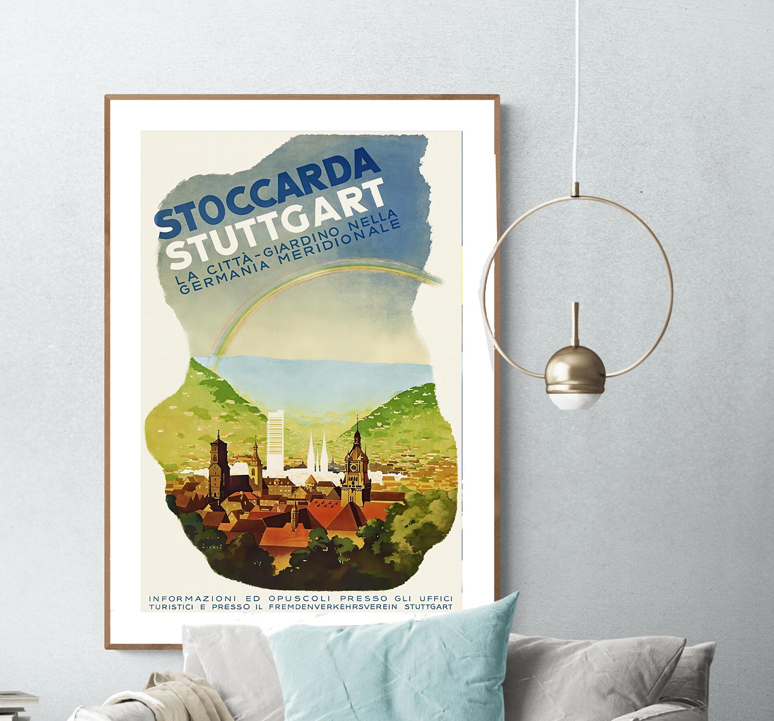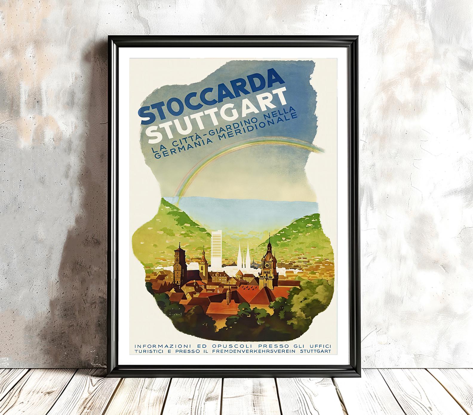 Vintage Stuttgart Germany Travel Poster: Stoccarda Art Print