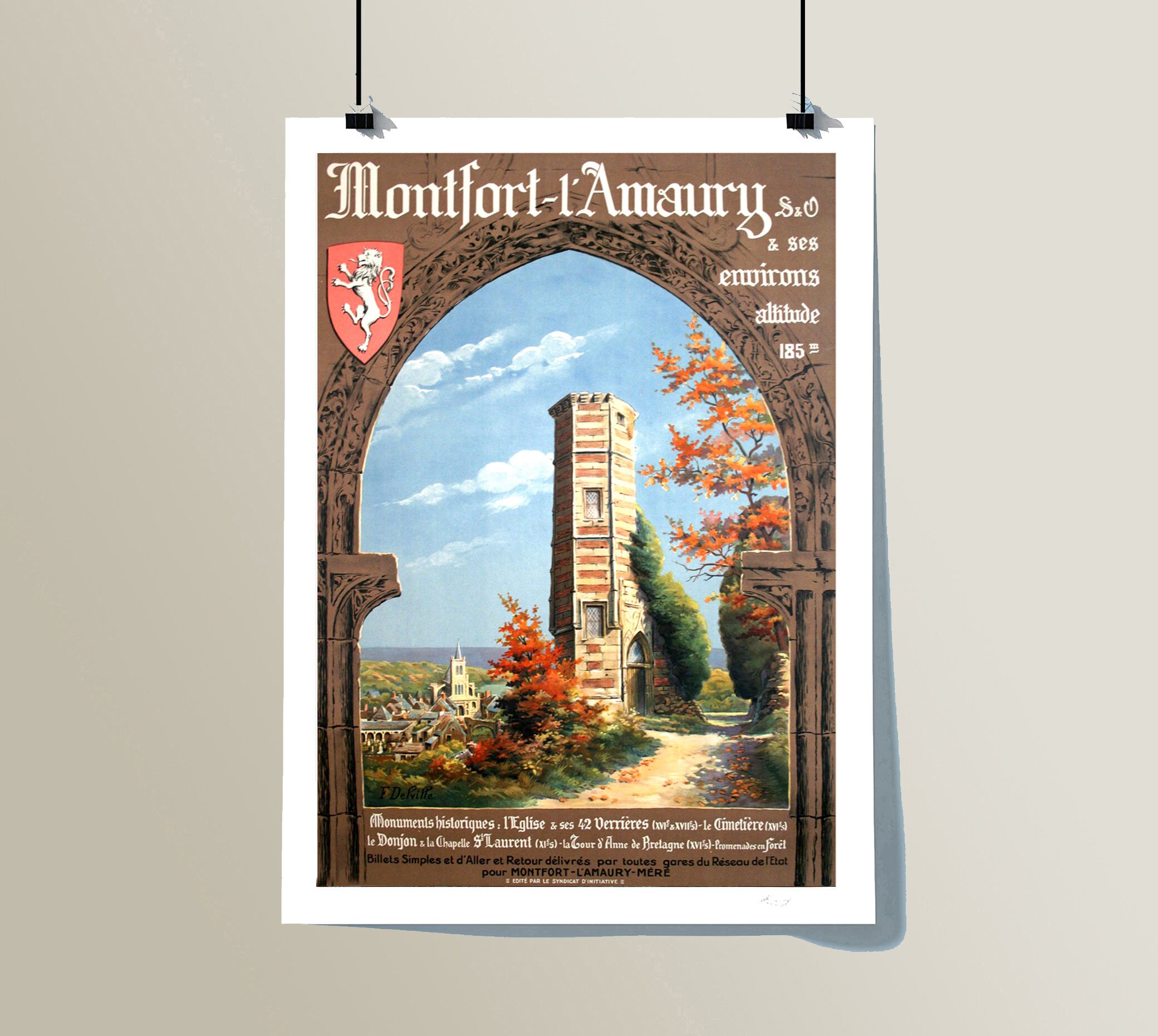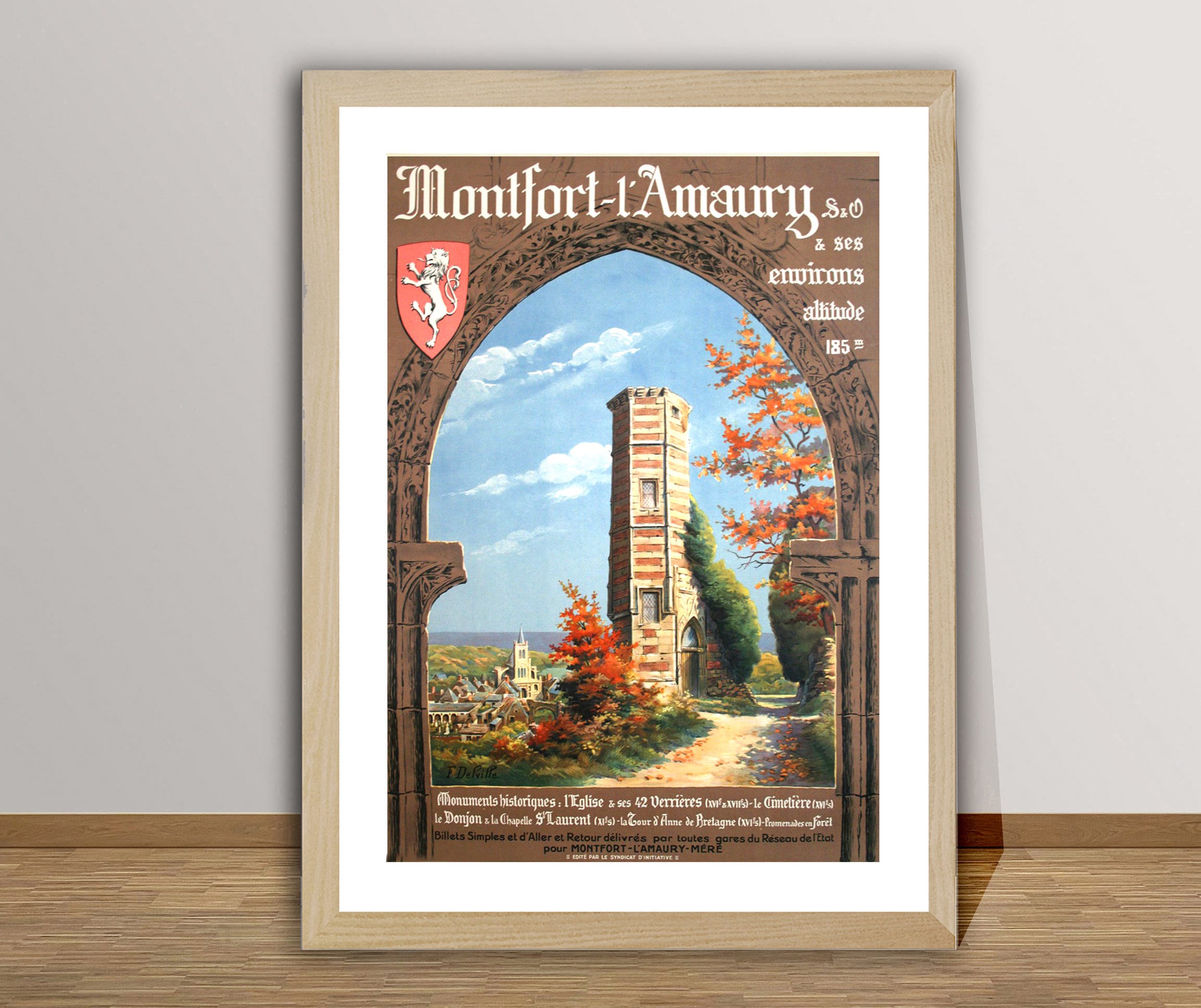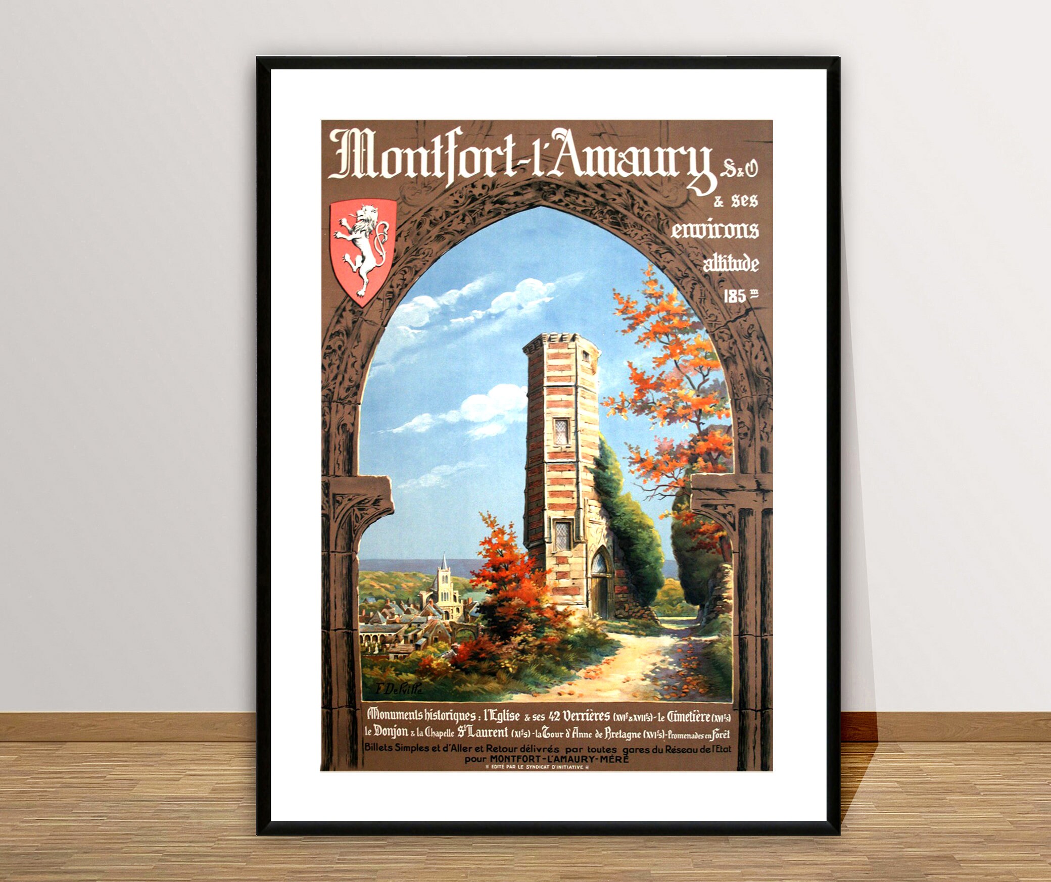Montfort L'Amaury, France Vintage Travel Poster - Poster Paper or Canvas Print / Gift Idea