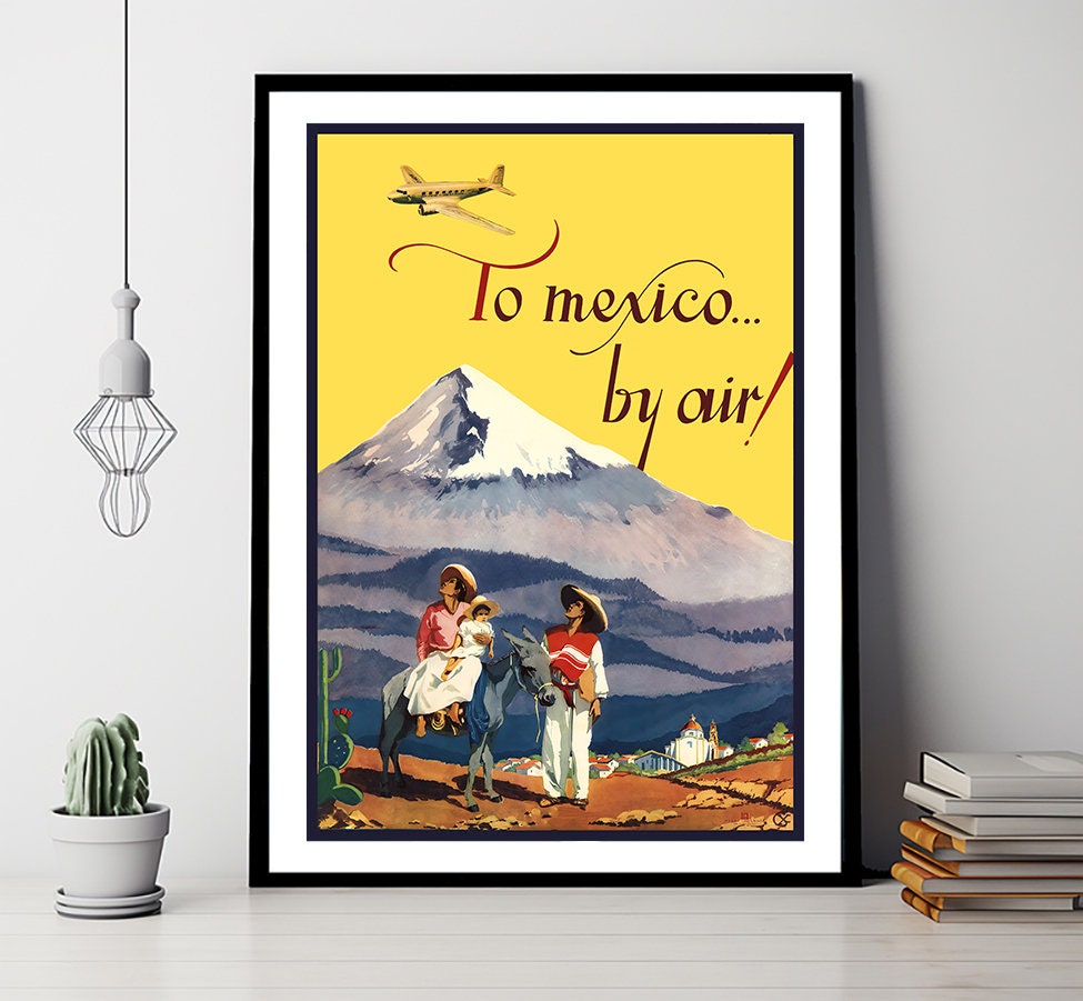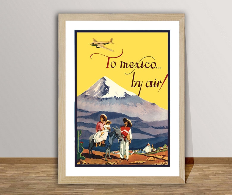 Mexico by Air Vintage Travel Poster - Poster Paper or Canvas Print / Gift Idea