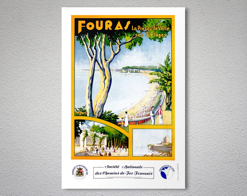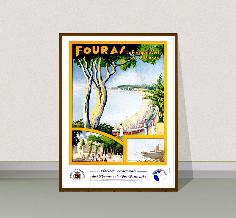 Fouras L'Presqu'ile Verte Ses 3 Plages, France Vintage Travel Poster - Poster Paper or Canvas Print / Gift Idea