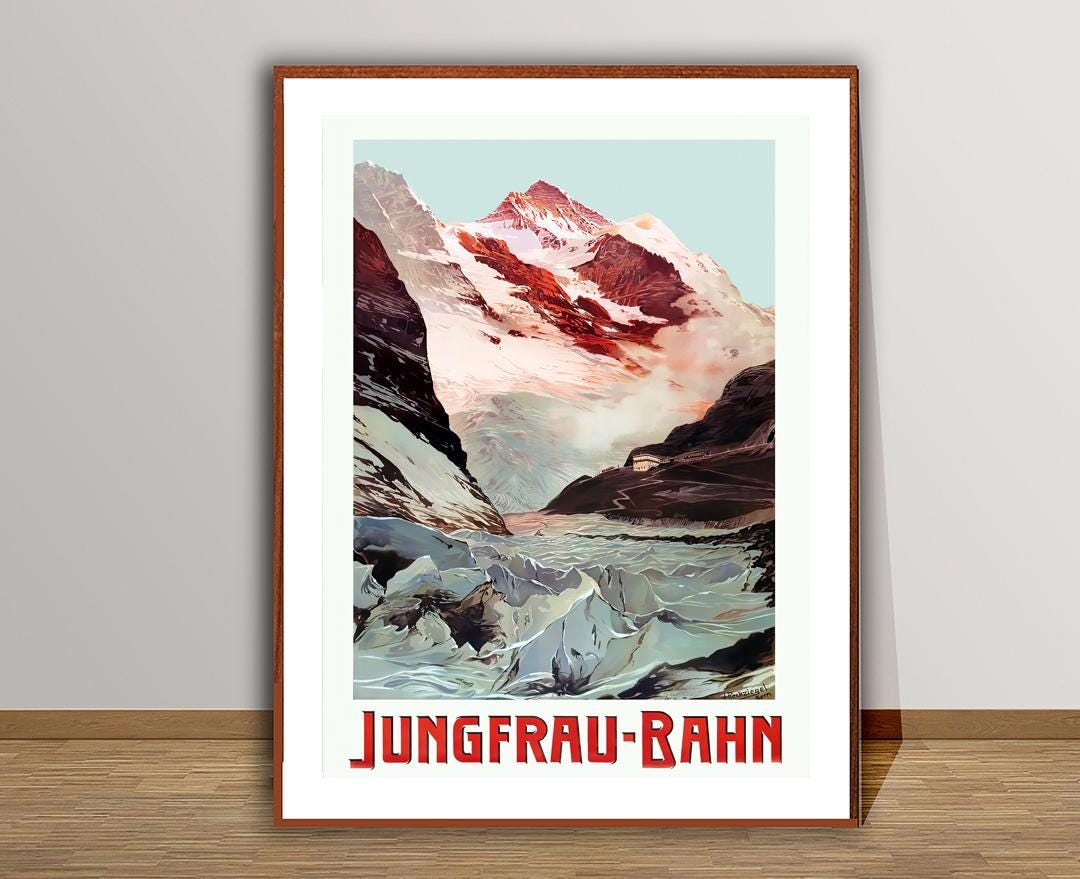 Jungfrau Joch Schweiz Vintage Travel Posters - Poster Paper or Canvas Print / Gift Idea