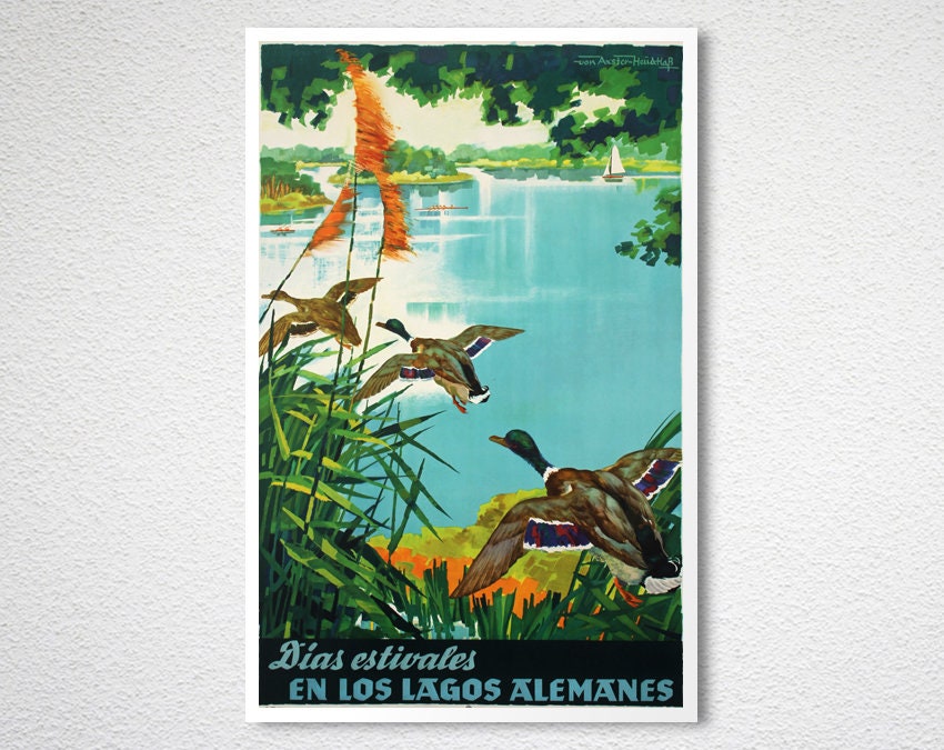 En Los Lagos Alemanes (In the German Lakes) Vintage Travel Poster - Poster Paper or Canvas Print / Gift Idea
