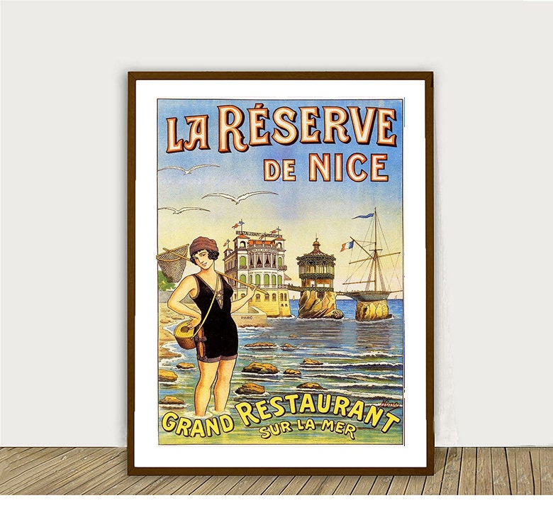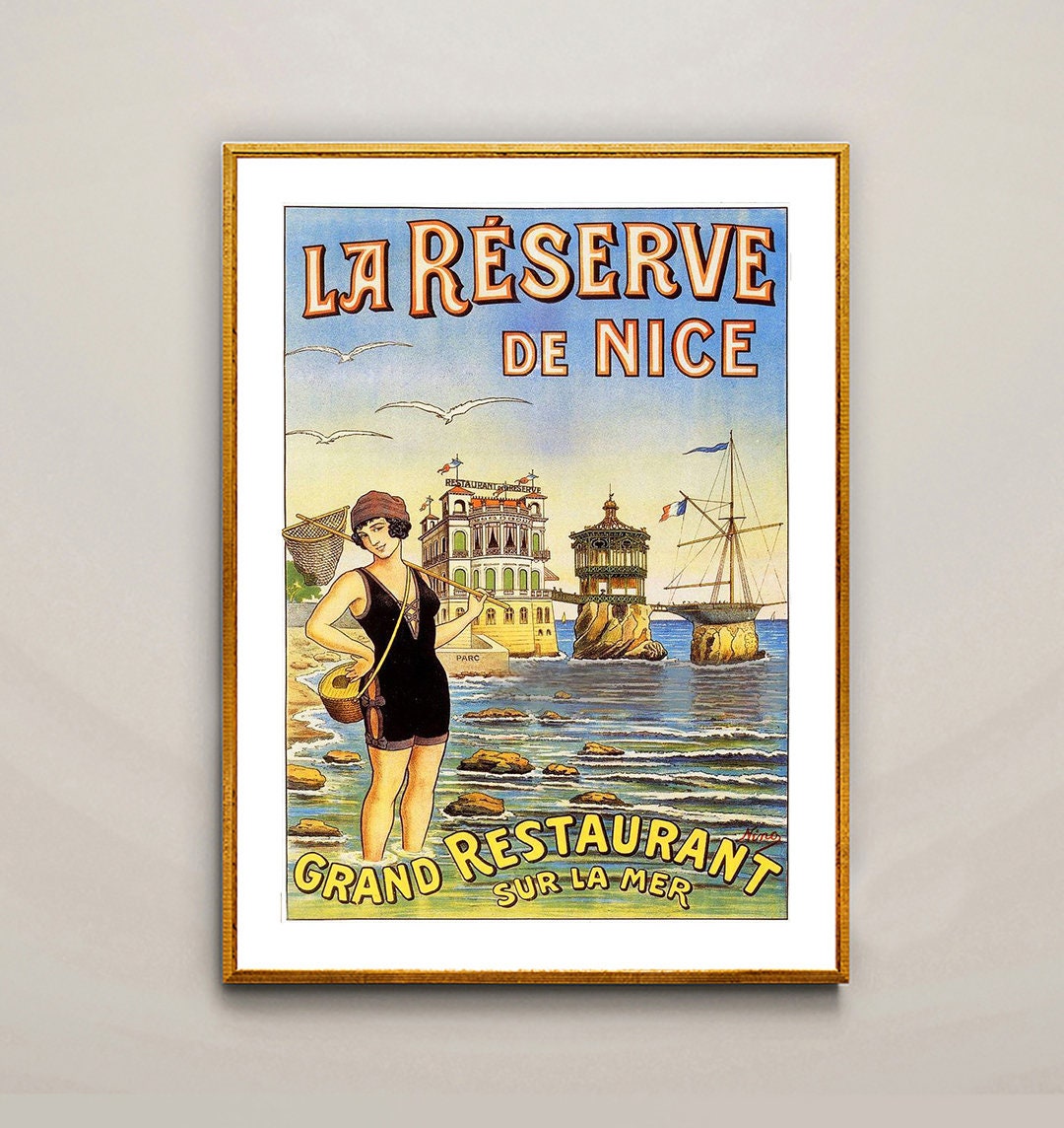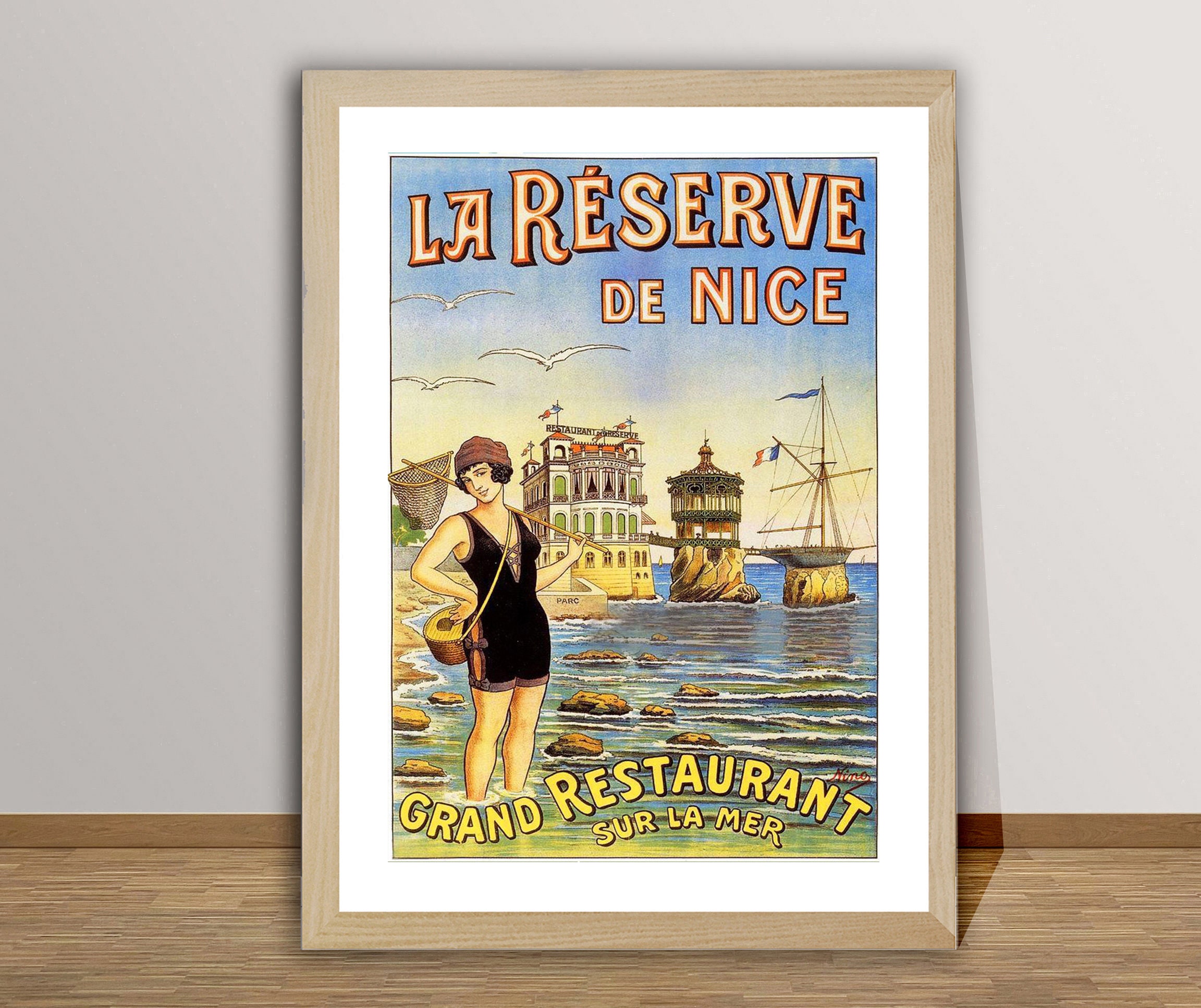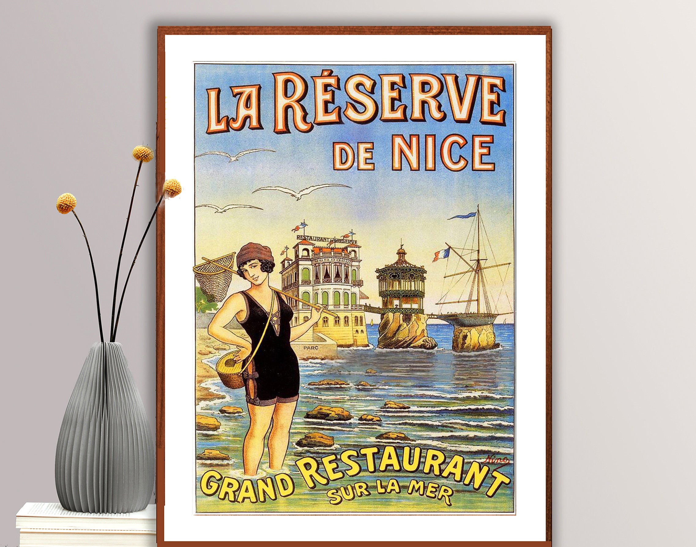 La Reserve de Nice ,Grand Restaurant sur La Mer, France Vintage Travel Poster - Poster Paper or Canvas Print / Gift Idea