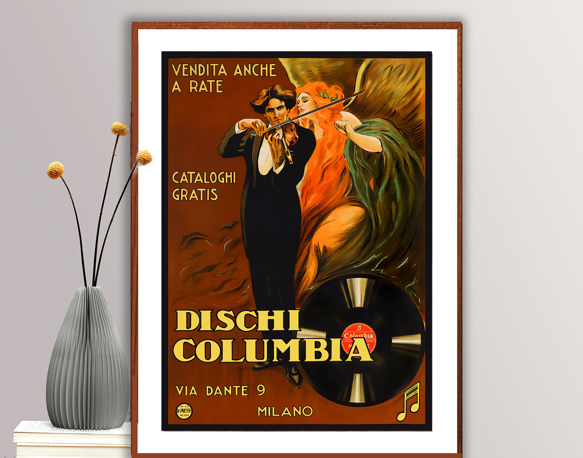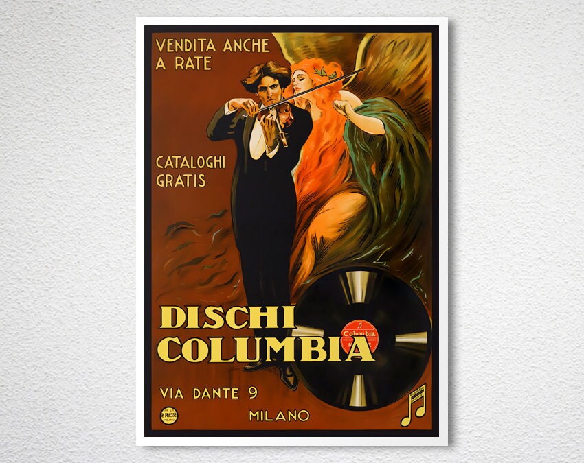 Vintage Dischi Columbia Advertisement Art Print - Reproduction of a Vintage Music Artwork, Decorative Purposes Wall Decor - Poster Paper or Canvas Print / Gift Idea