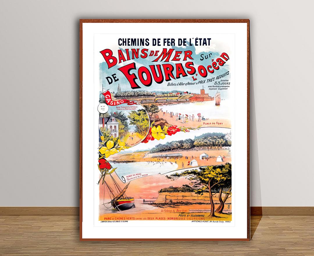 Bains de Mer de Fouras sur L'Ocean, France Vintage Travel Poster - Poster Paper or Canvas Print / Gift Idea