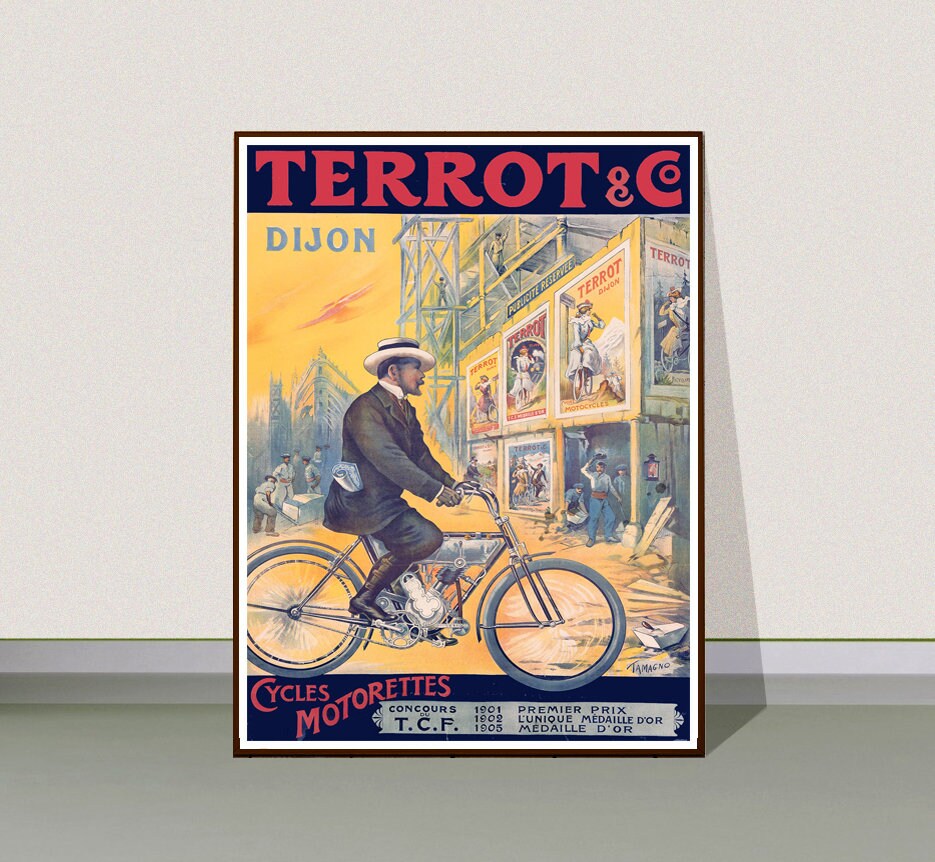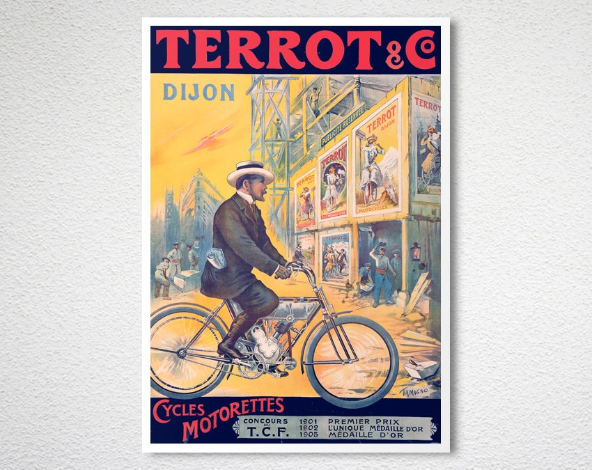 Vintage Cycles Terrot Dijon Advertisement Art Print - Reproduction of a Vintage Artwork, Decorative Purposes Wall Decor - Poster Paper or Canvas Print / Gift Idea