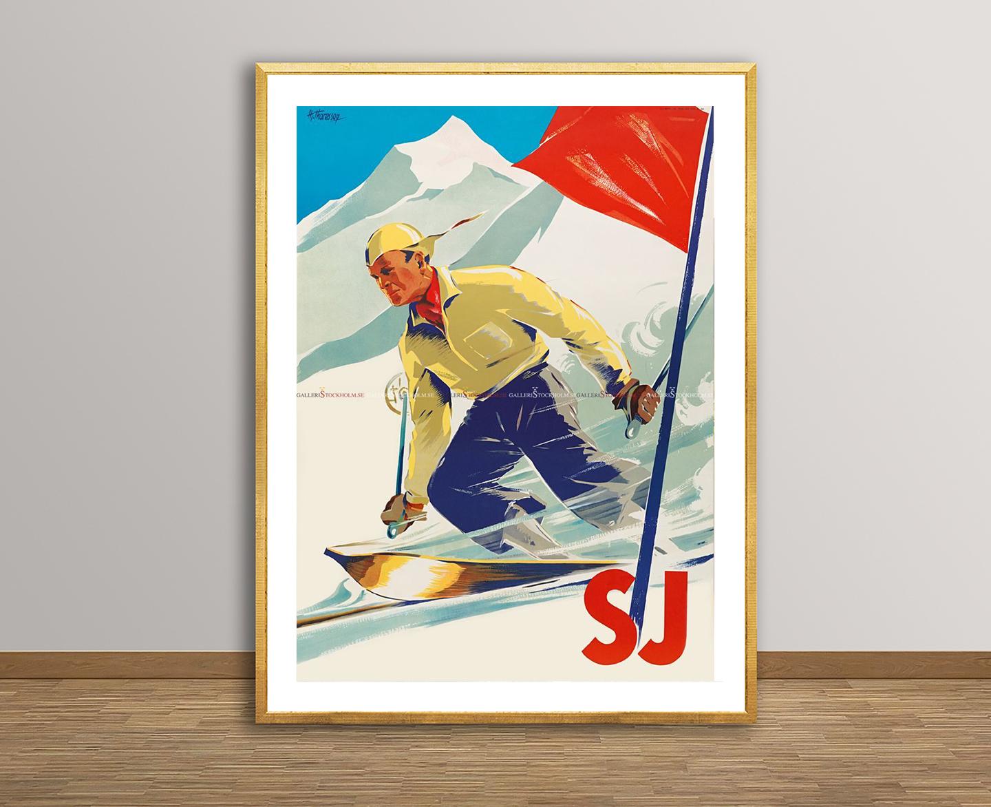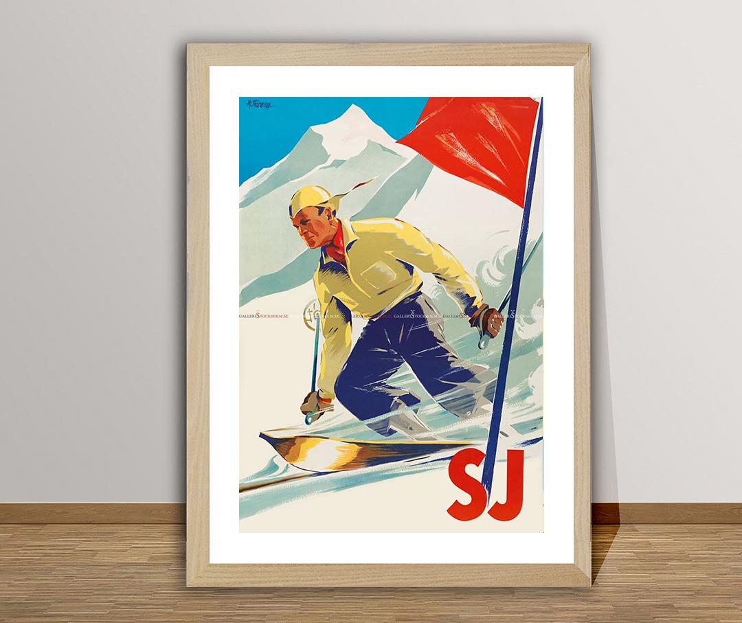Vintage Ski Poster: Sweden Winter Sport Travel Art