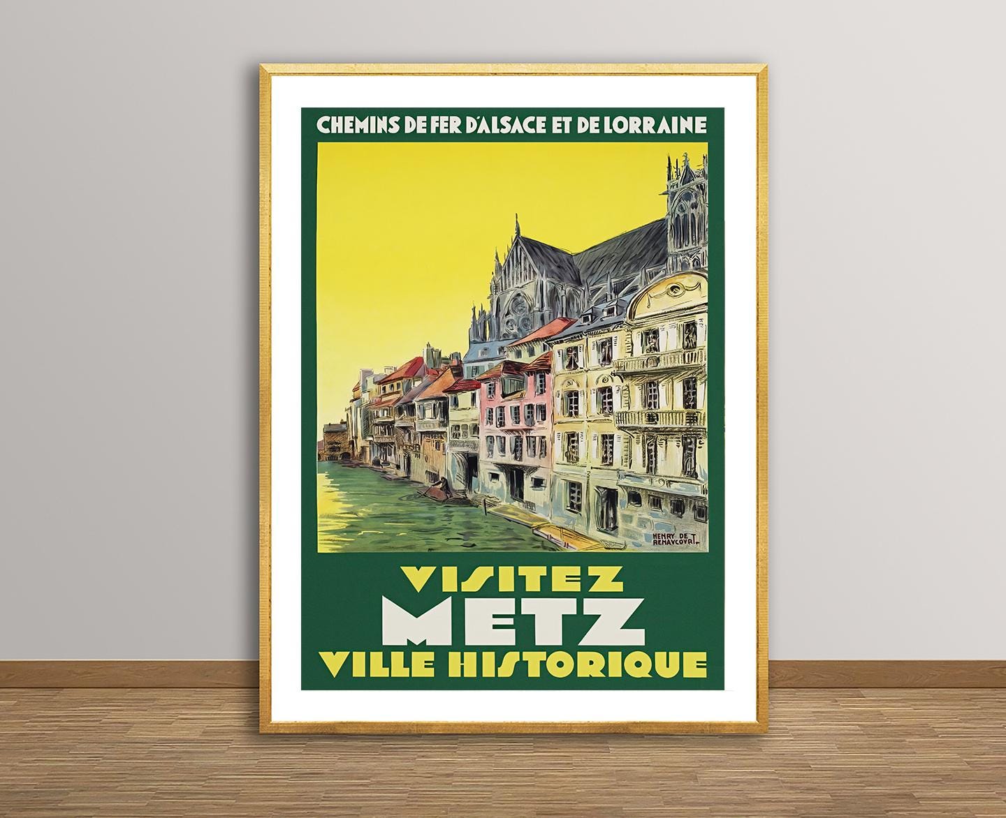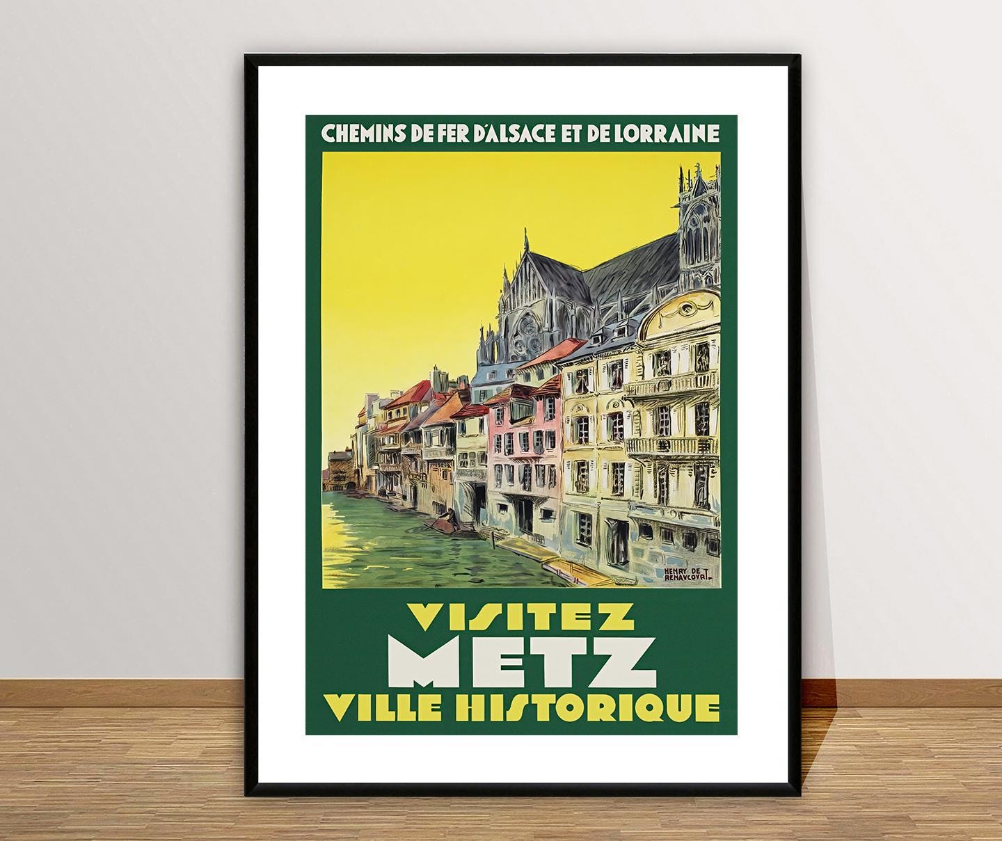 Visitez Metz Ville Historique, France Vintage Travel Poster - Poster Paper or Canvas Print / Gift Idea