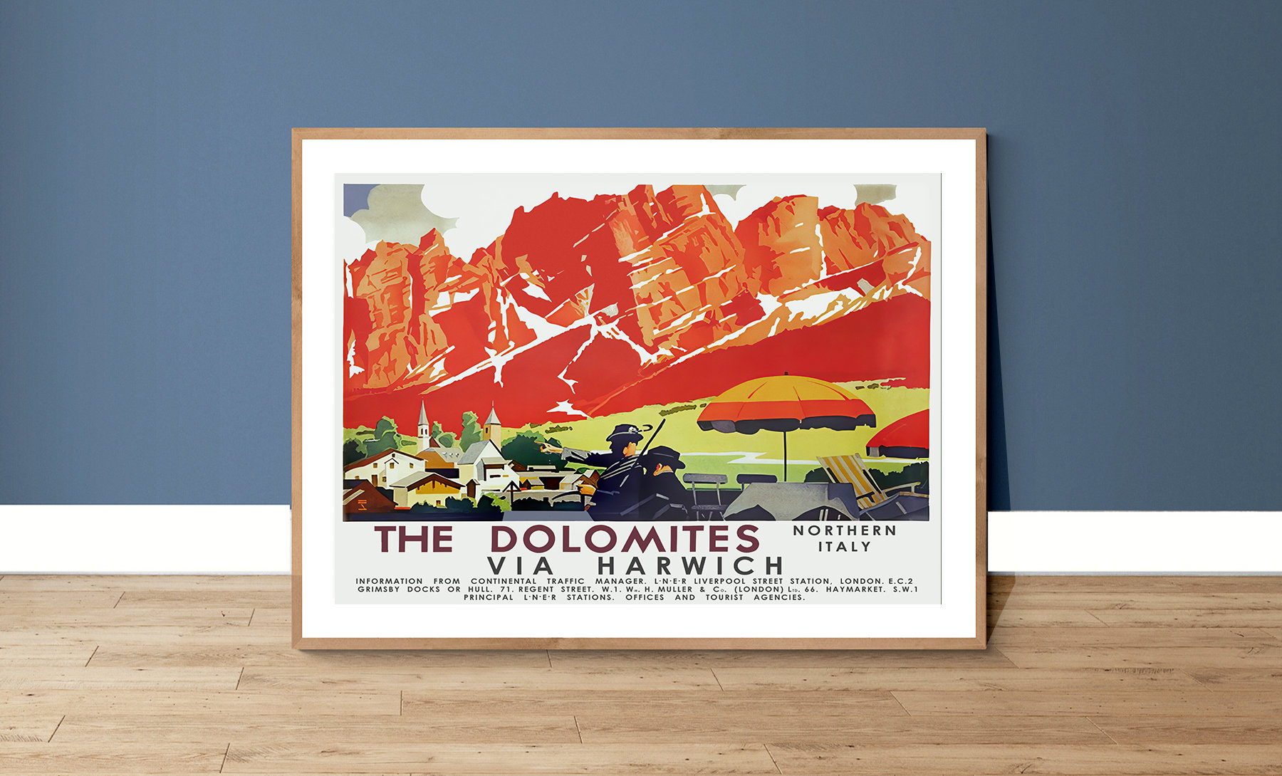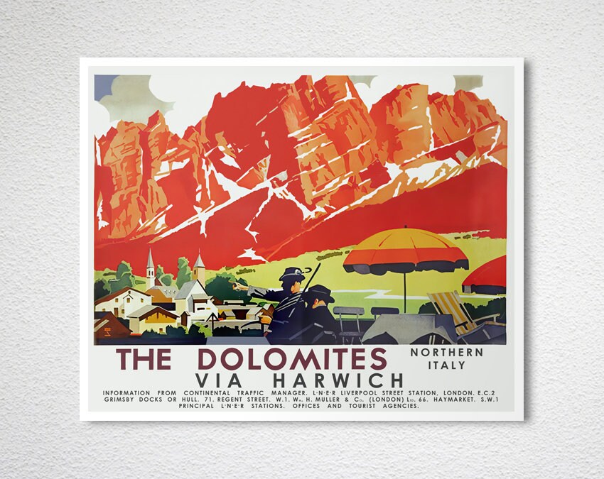 Dolomites Via Harwich Vintage Travel Poster: Paper or Canvas Print