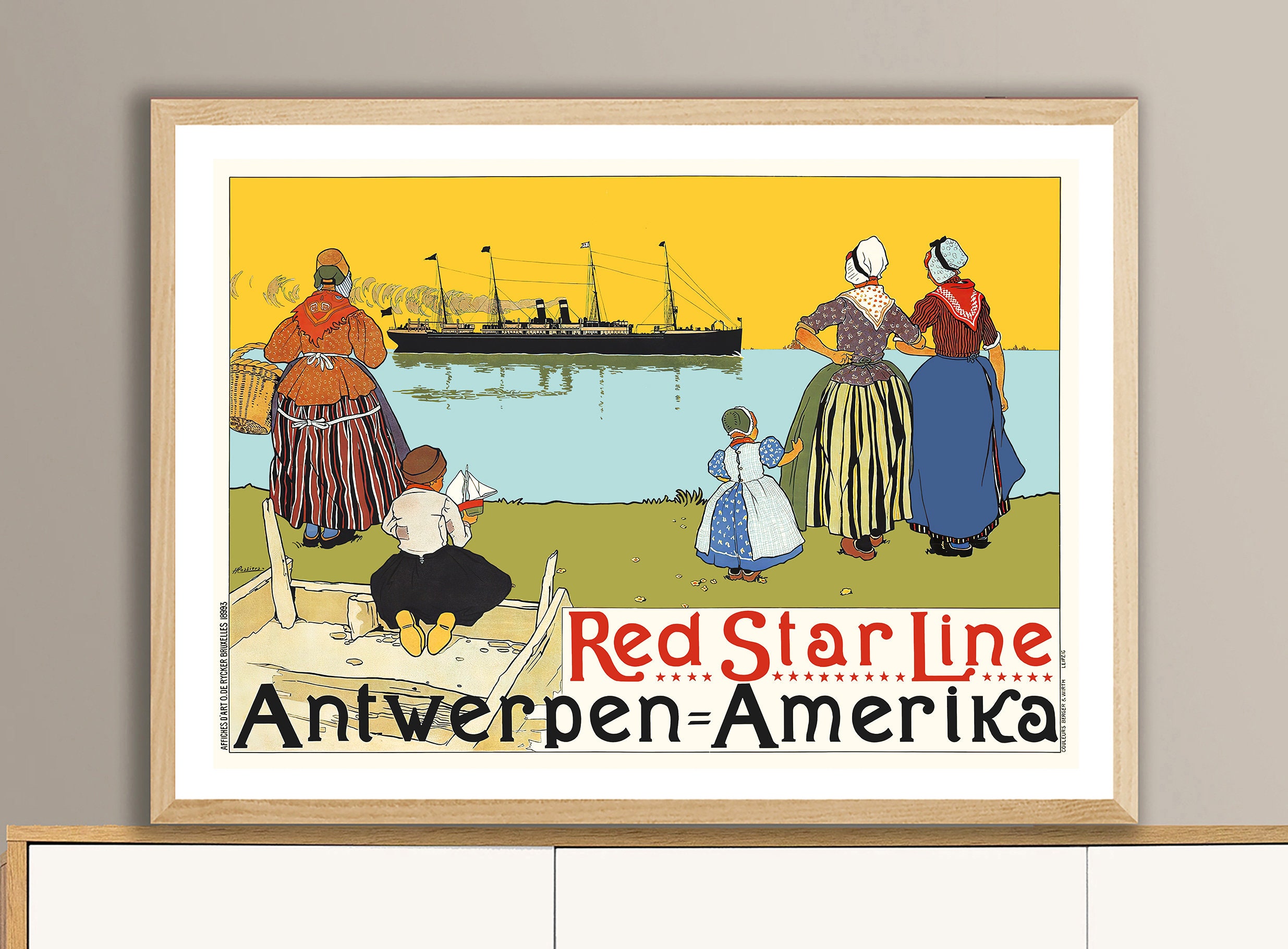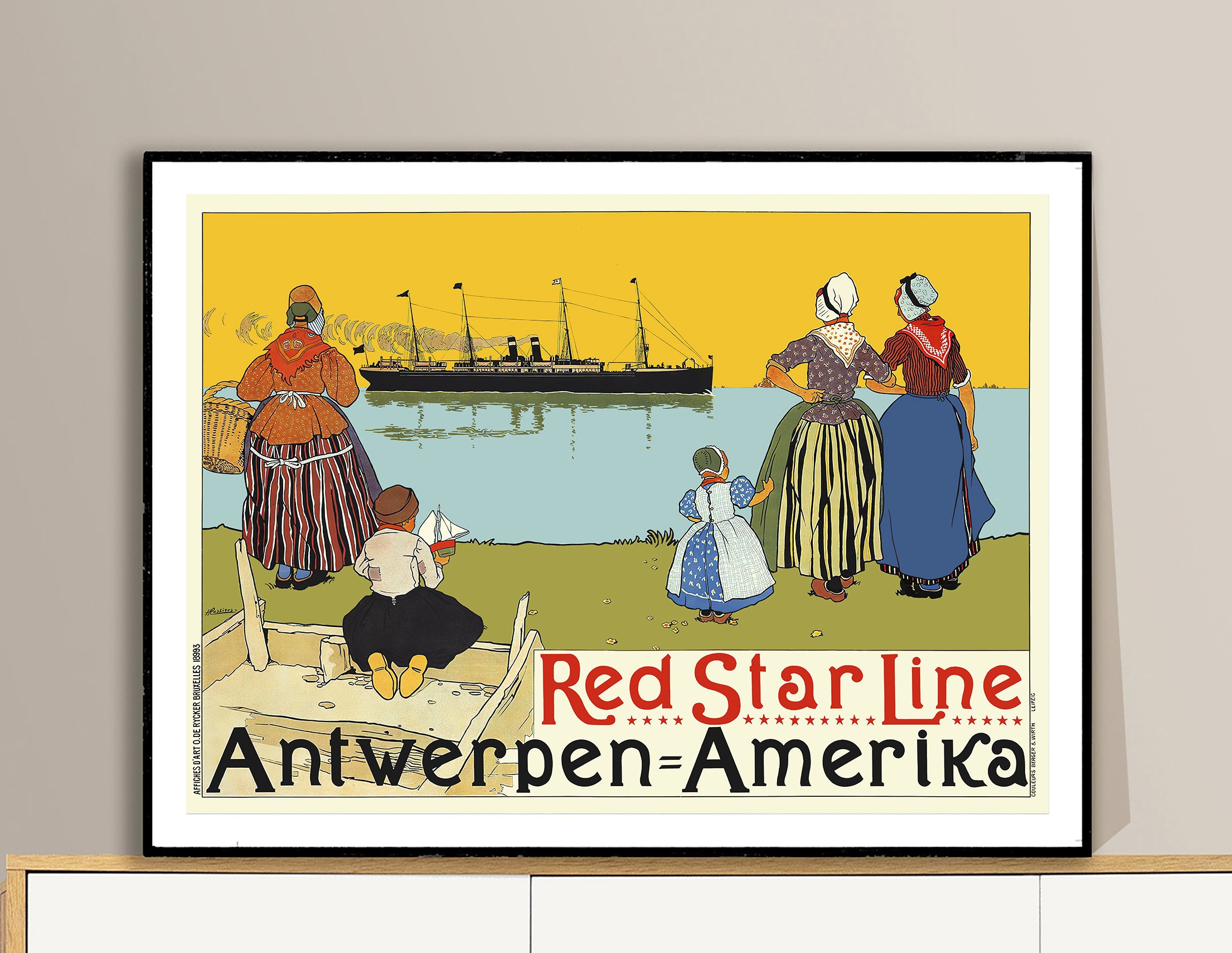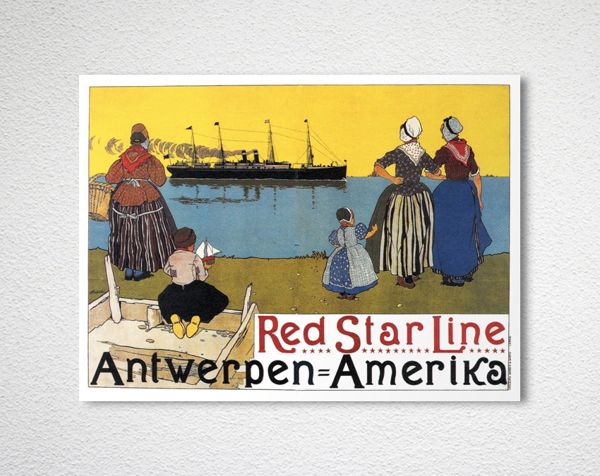 Red Star Line Antwerpen Amerika Vintage Travel Poster - Poster Paper or Canvas Print / Gift Idea