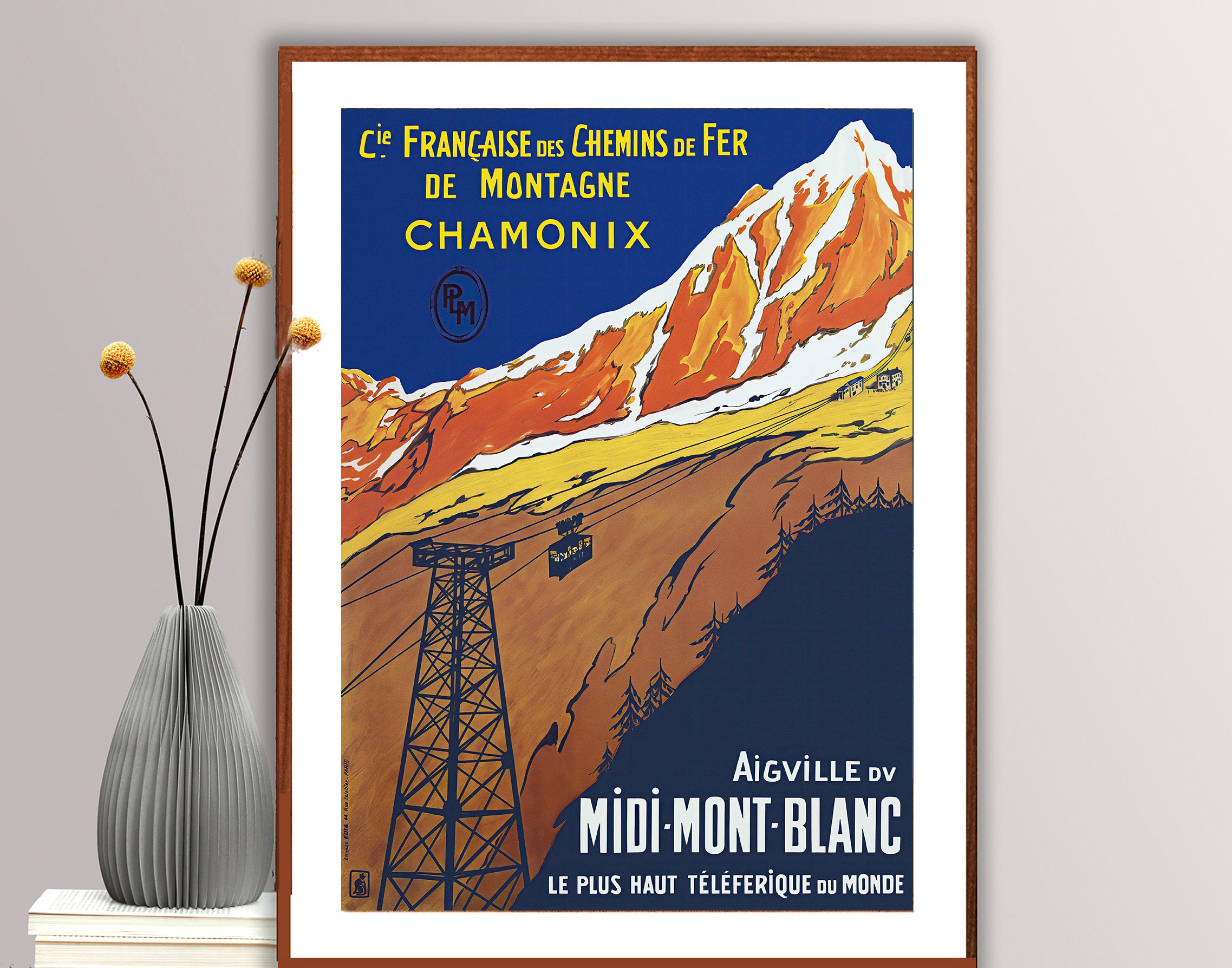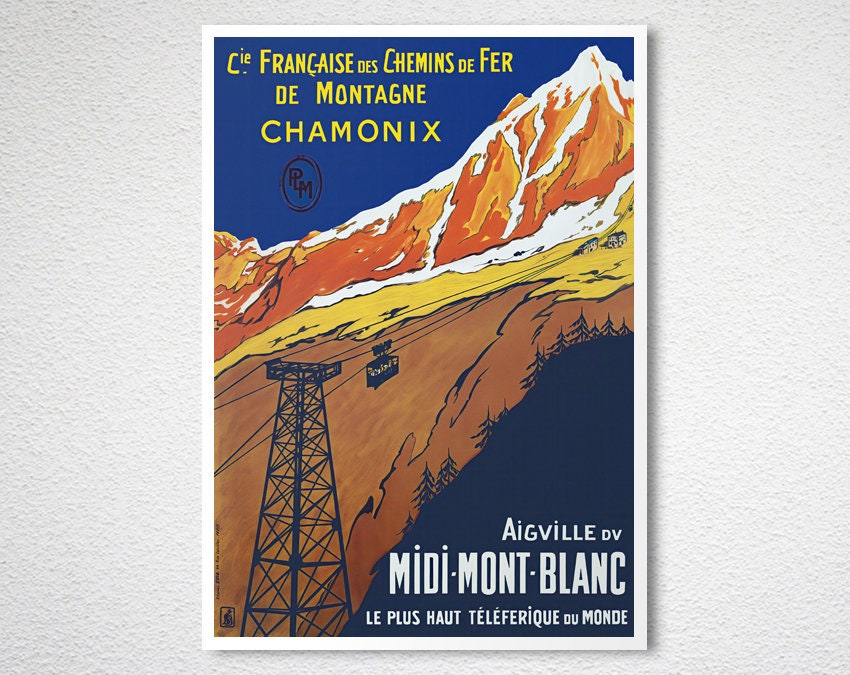 Chamonix Midi Mont-Blanc Le Plut Haut Teleferique du Monde Vintage Travel Poster - Poster Paper or Canvas Print / Gift Idea