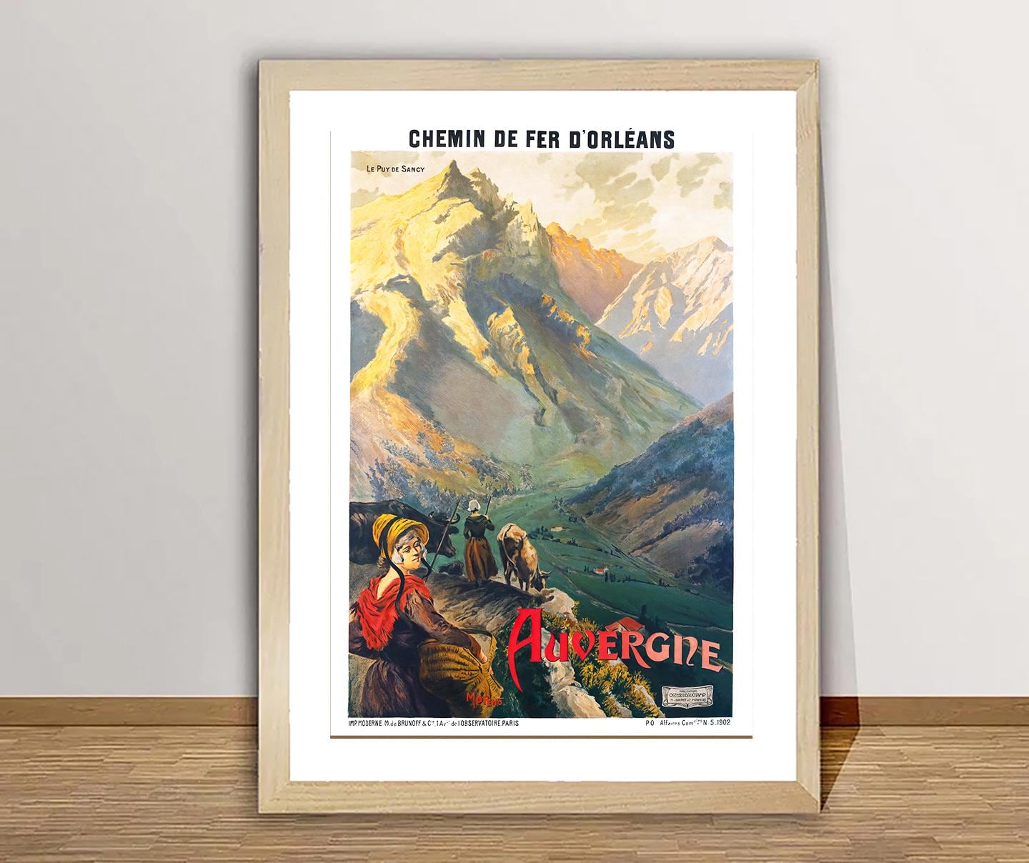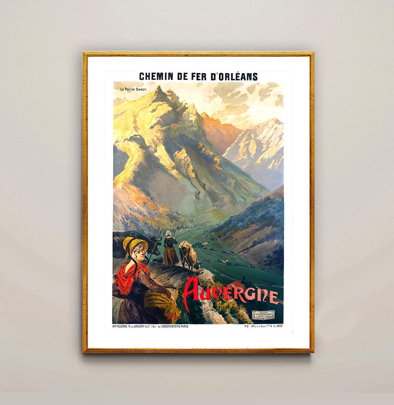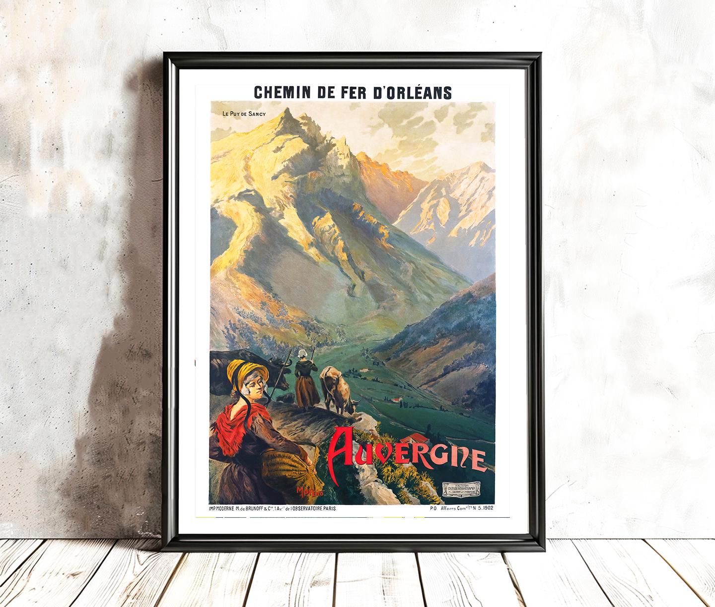 Auvergne France Vintage Travel Poster: Mountain Landscape Art Print