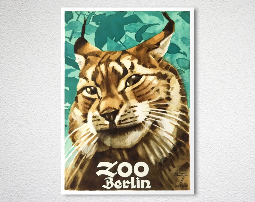 Vintage Zoo Berlin Travel Poster by Ludwig Hohlwein - Lynx Print