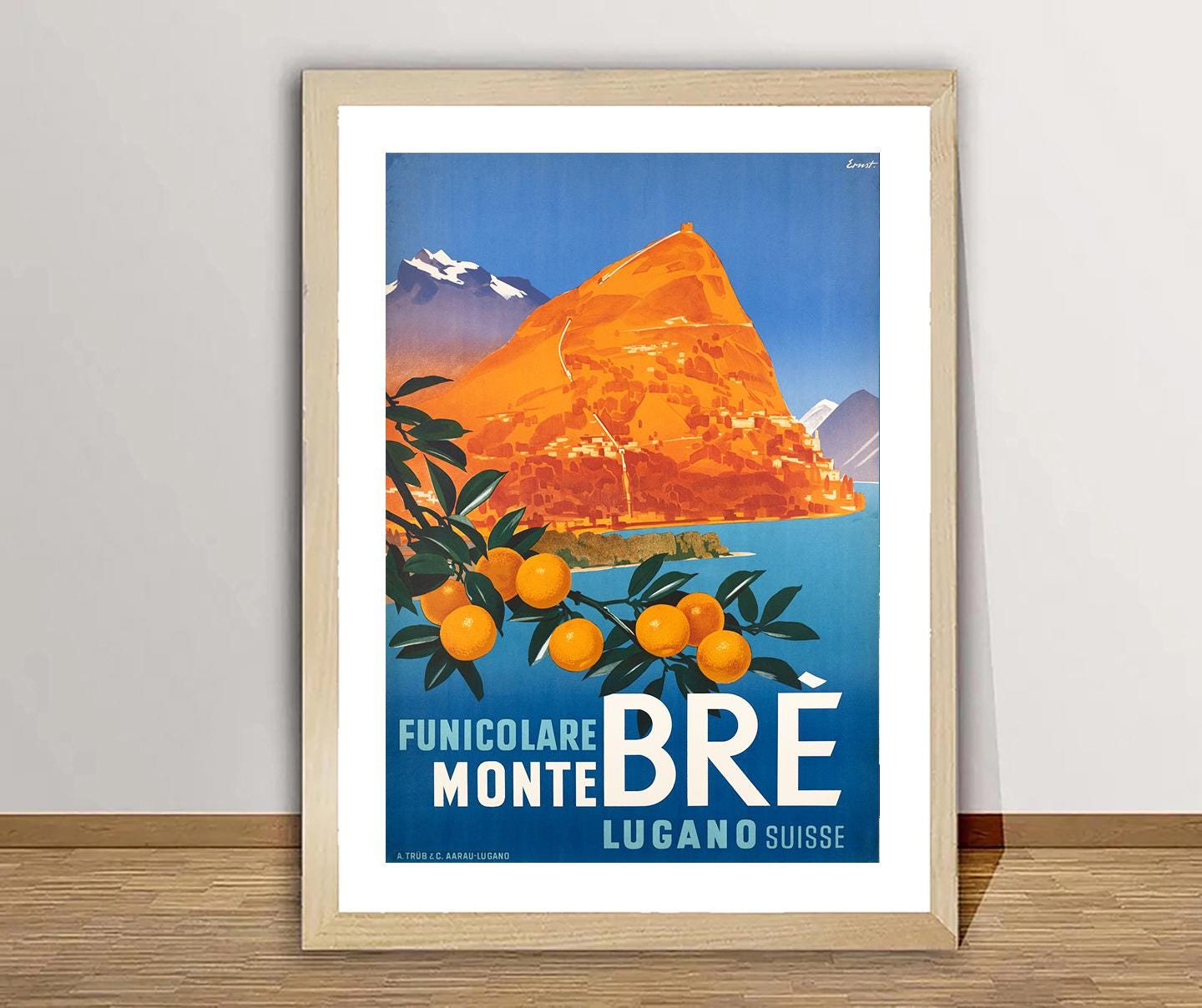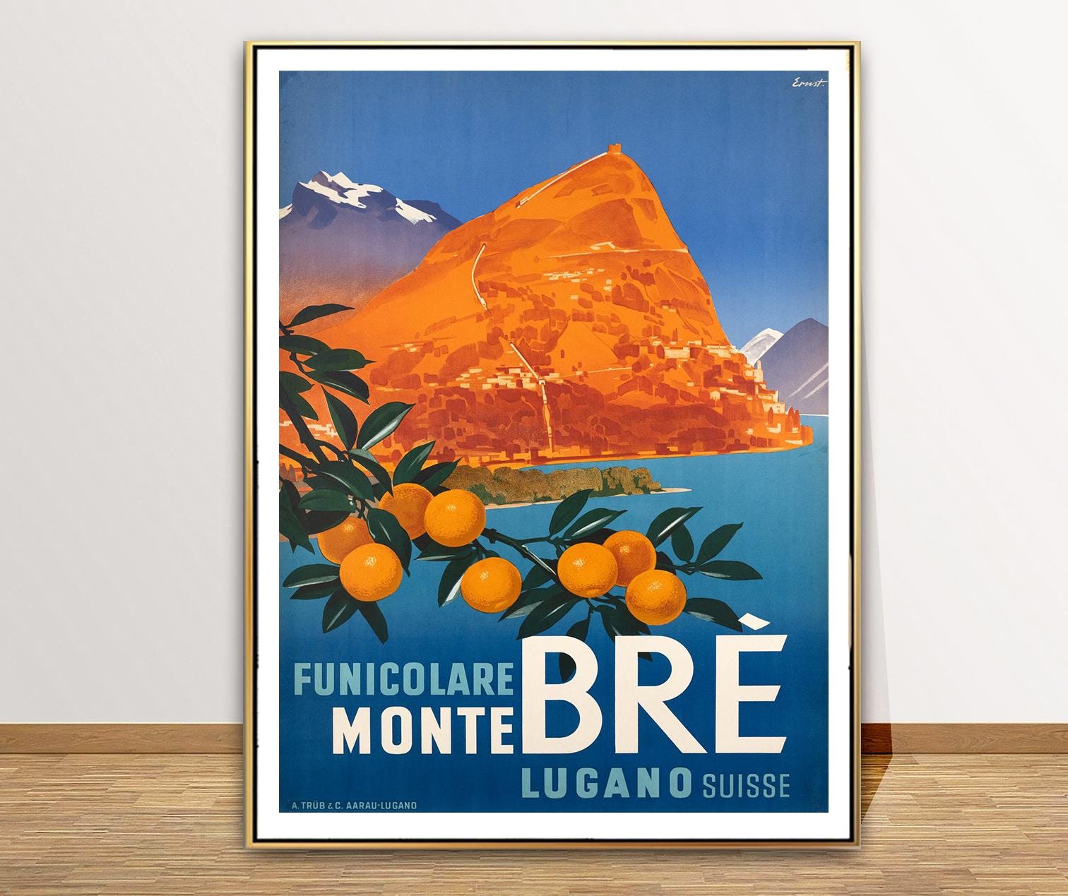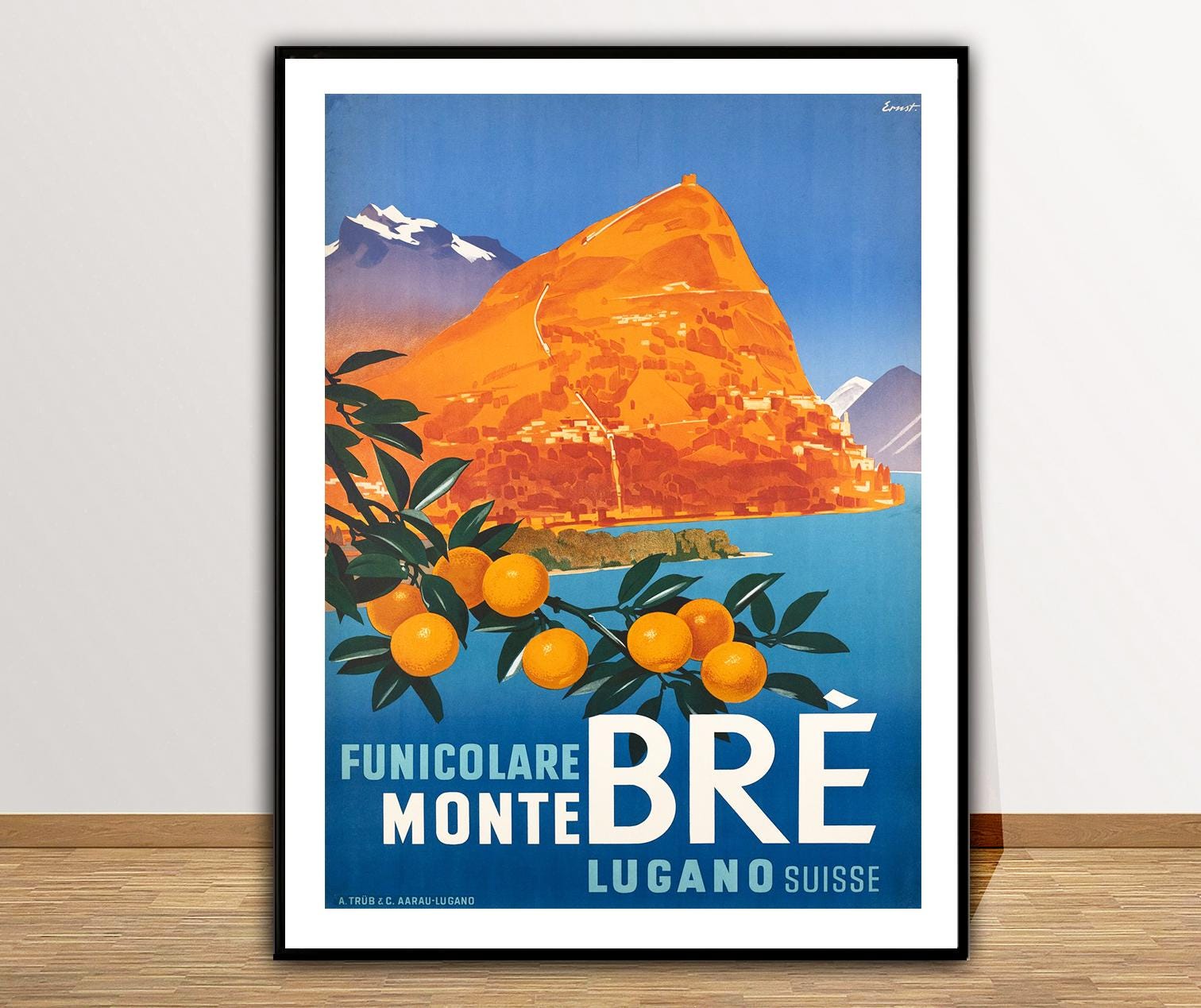 Funicolare Monte Bre. Lugano Suisse Vintage Travel Poster - Poster Print or Canvas Print / Gift Idea / Wall Decor