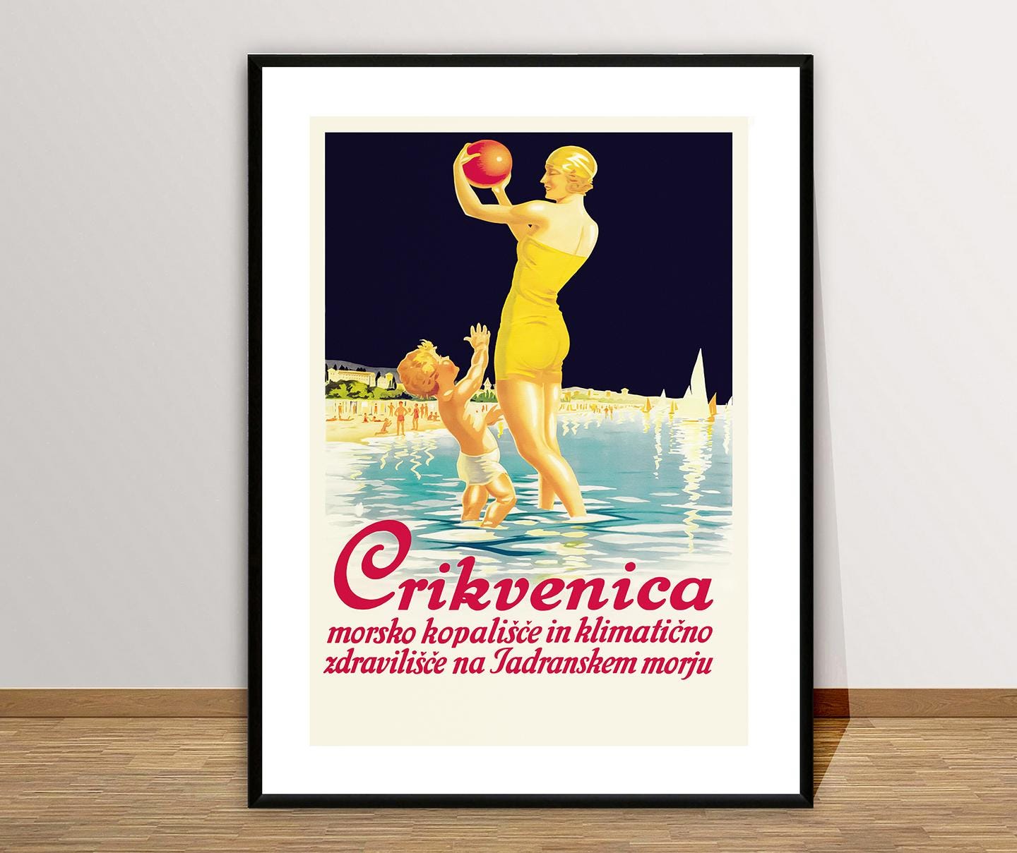 Crikvenica Croatia Vintage Travel Poster: Retro Wall Art