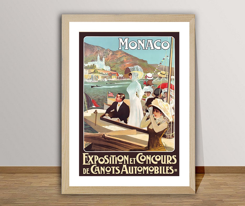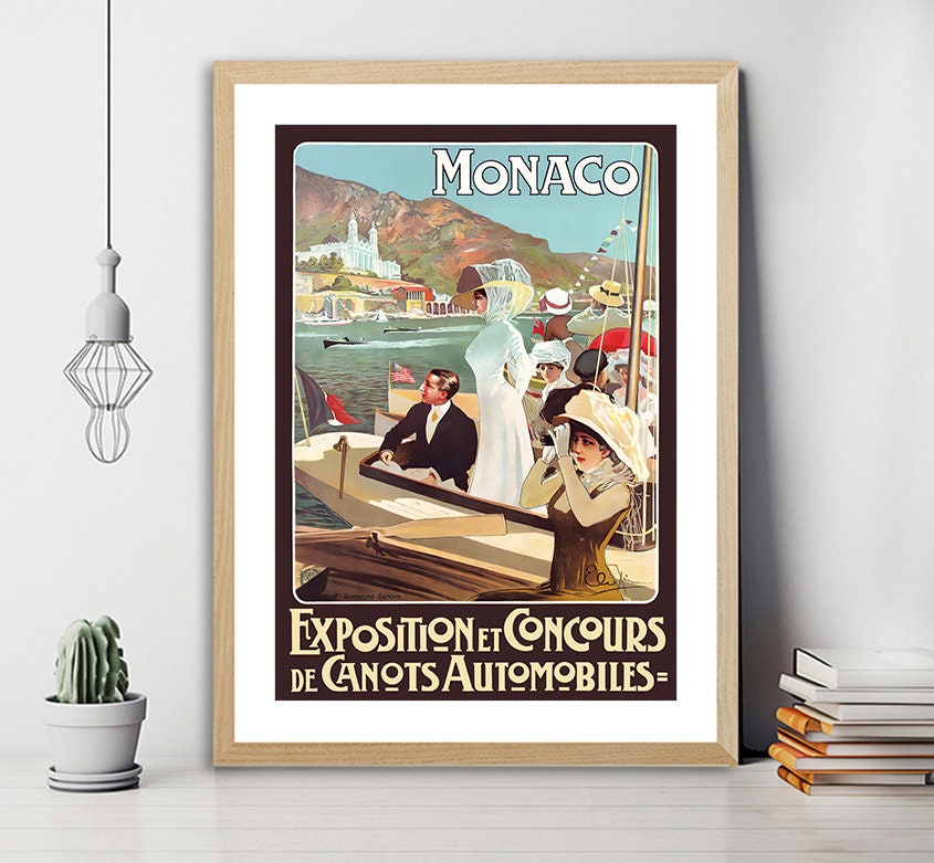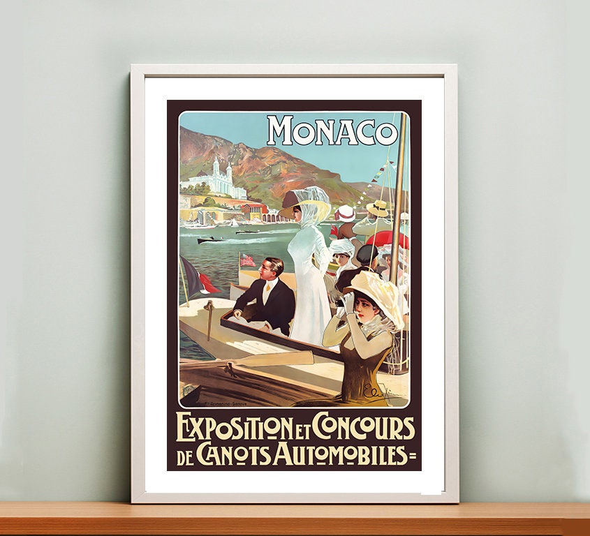Monaco Exposition et Concours de Canots Automobiles Vintage Travel Poster - Poster Paper or Canvas Print / Gift Idea