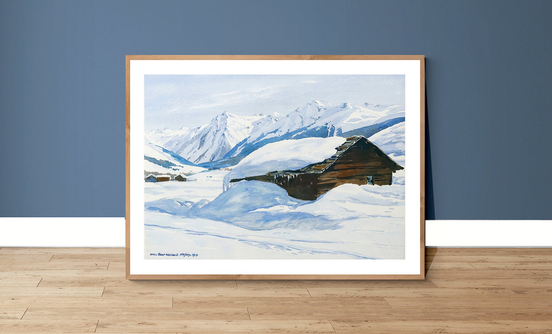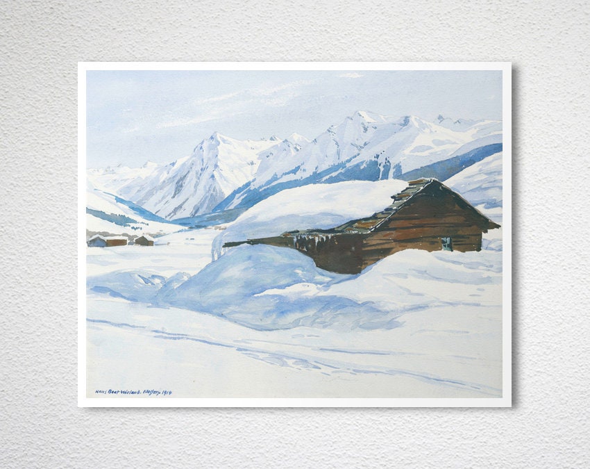 Winter Landscape near Kloster, Suisse Vintage Travel Poster by Hans Beat Wieland - Poster Paper or Canvas Print / Gift Idea