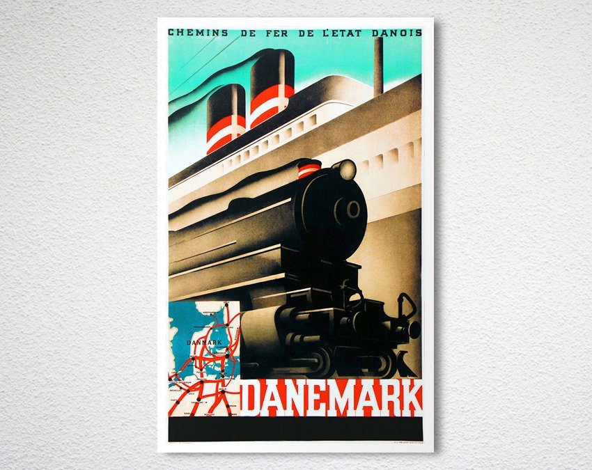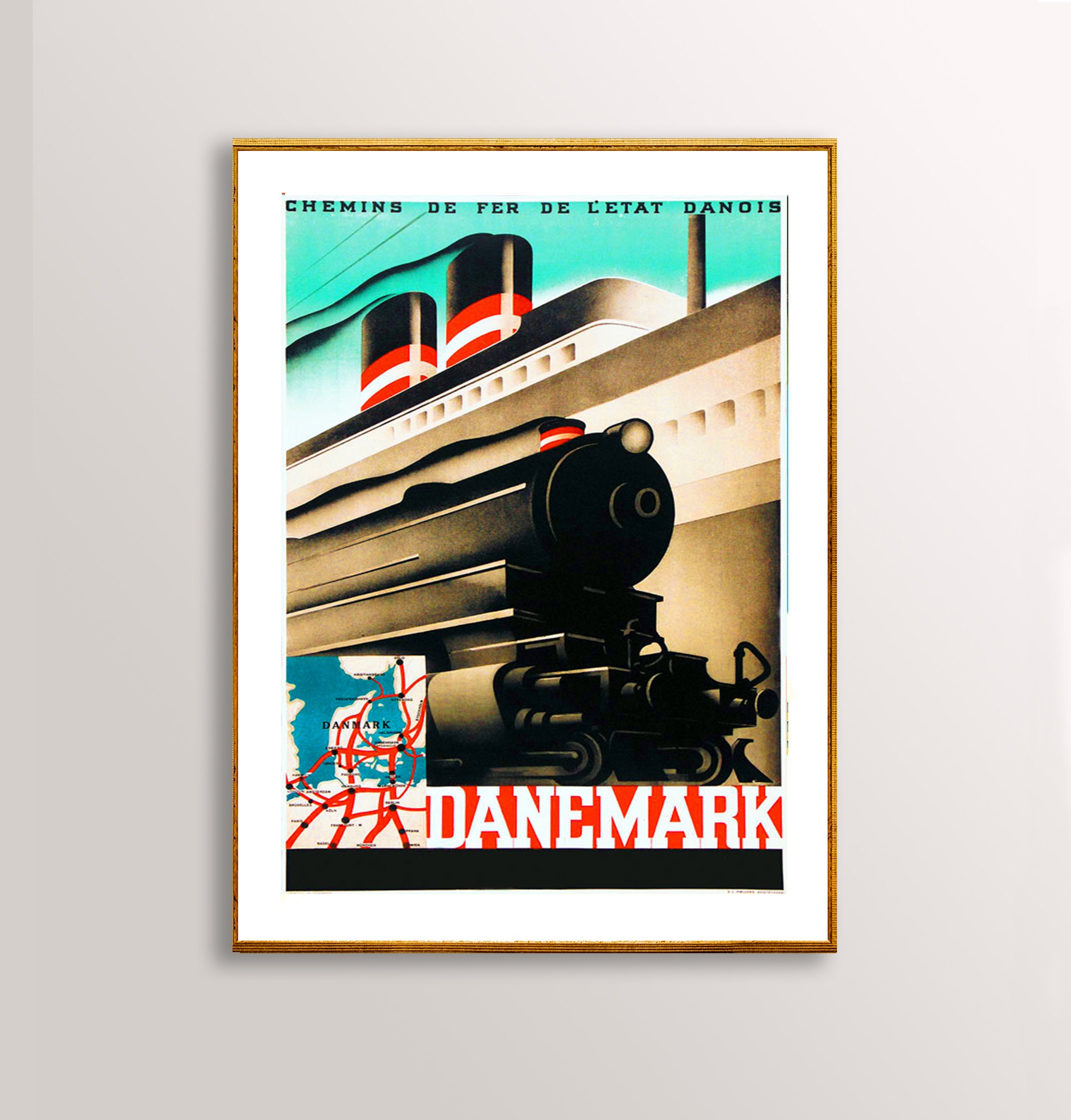 Denmark Vintage Travel Poster: Railway Art Deco Print