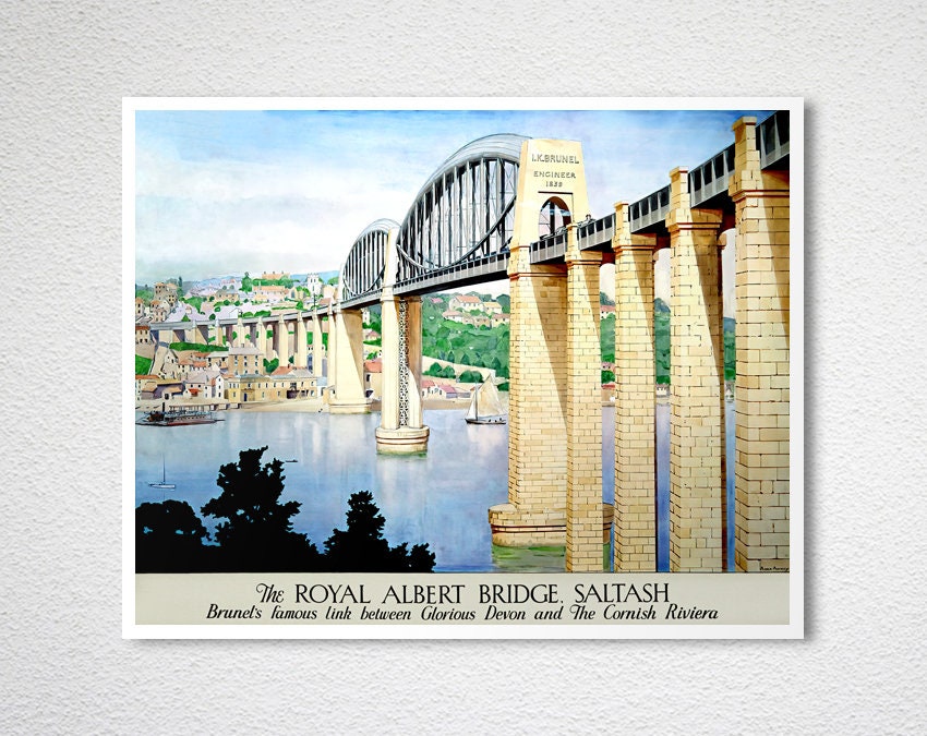 The Royal Albert Bridge Saltash England Vintage Travel Poster - Poster Print or Canvas Print / Gift Idea / Christmas Gift