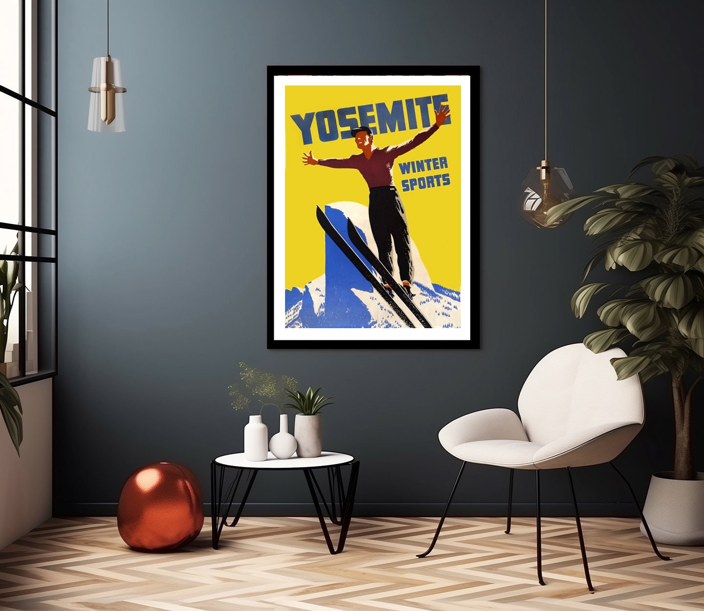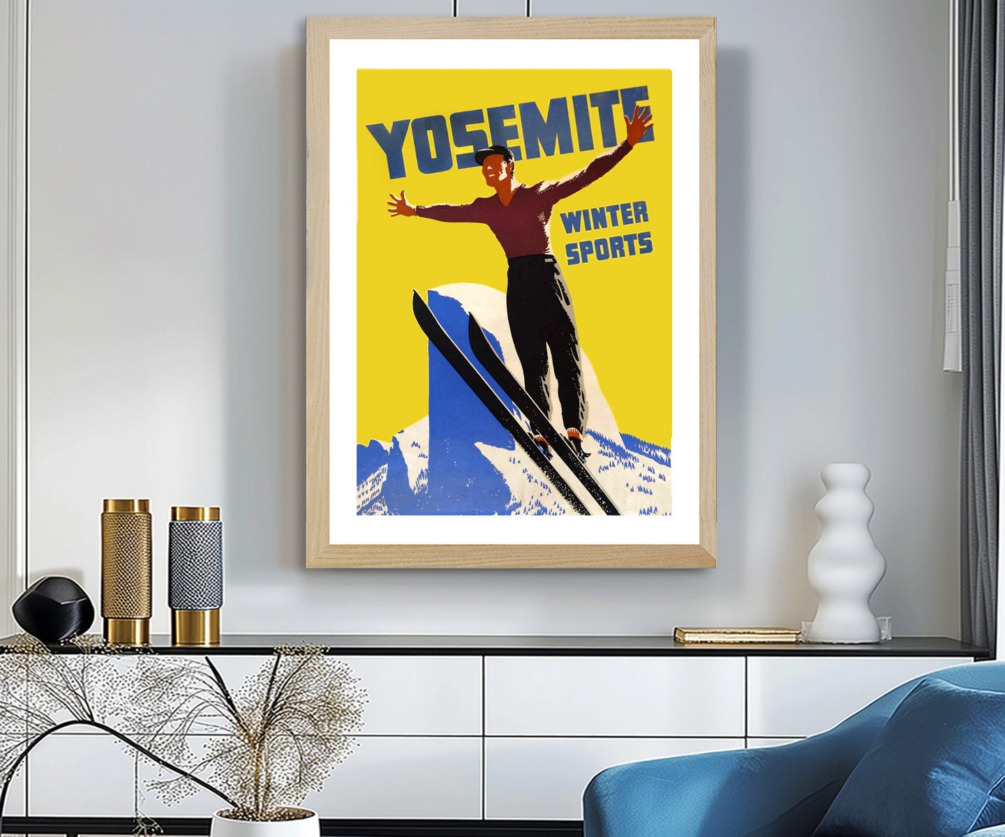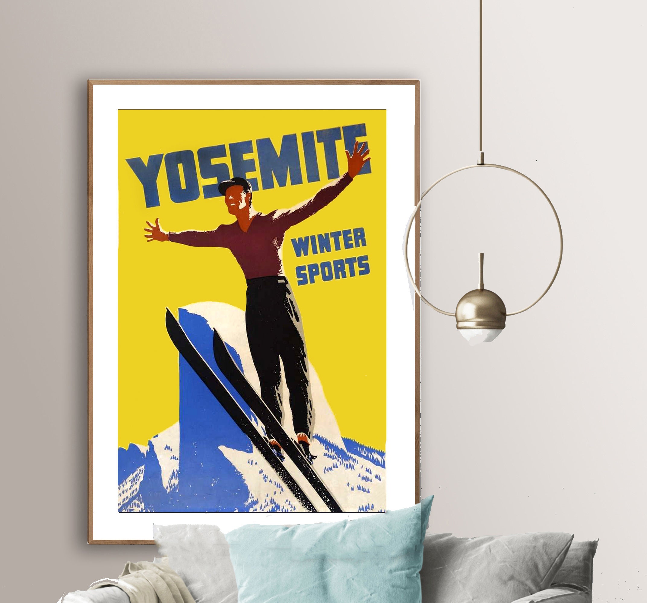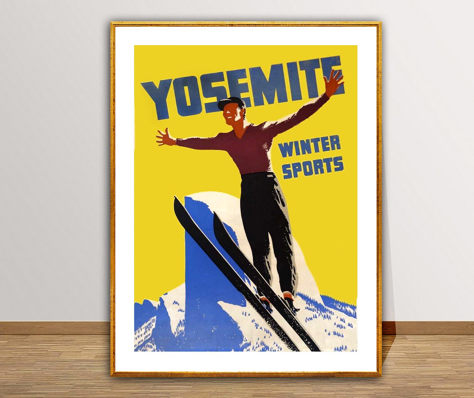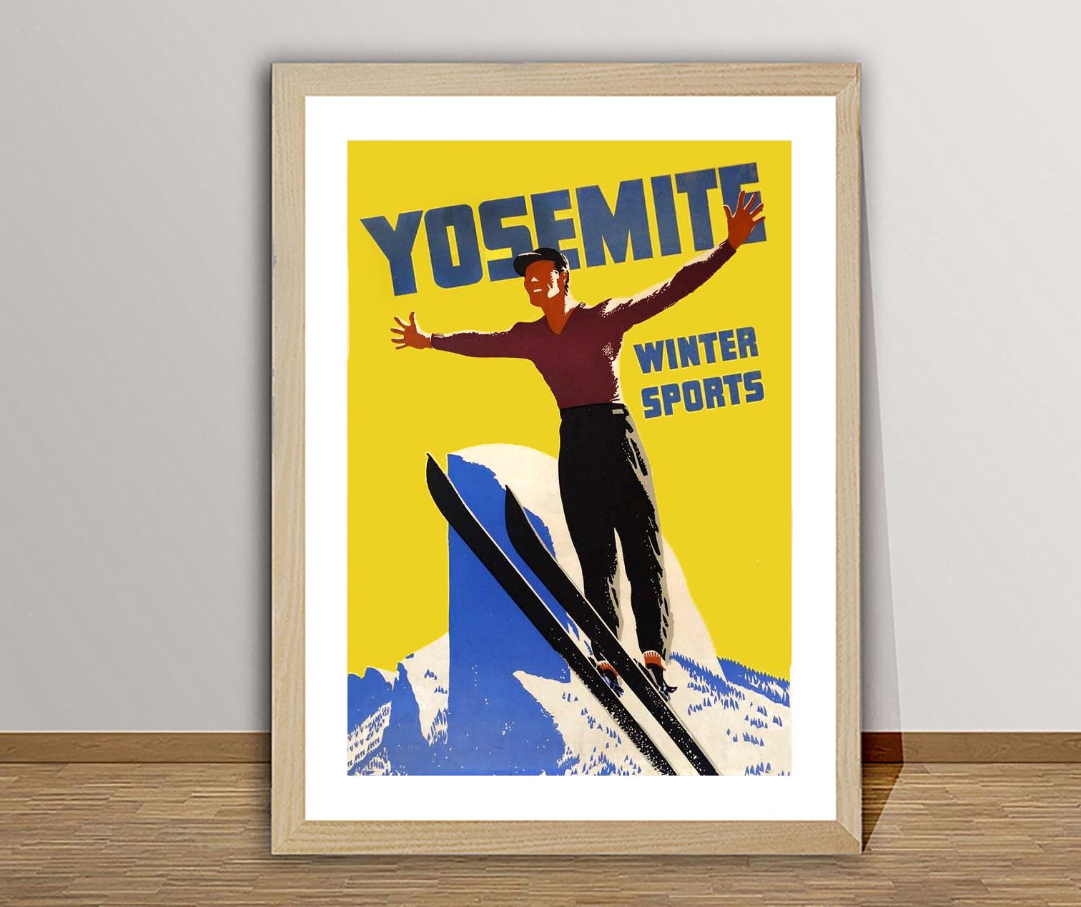 Yosemite National Park, Winter Sports United States Vintage Travel Poster - Poster Paper or Canvas Print / Gift Idea