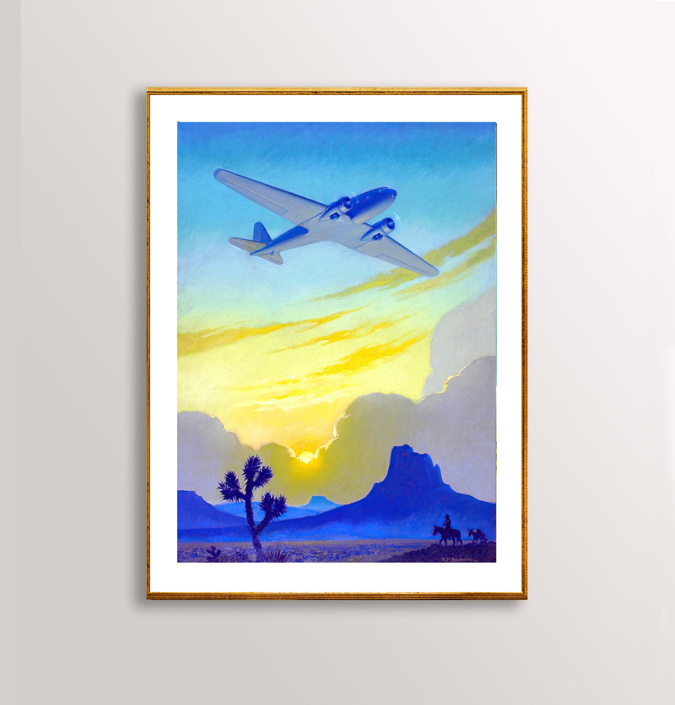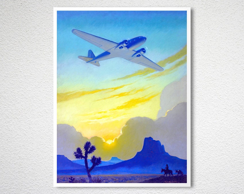 Vintage Airplane Travel Poster: American West Desert Art Print