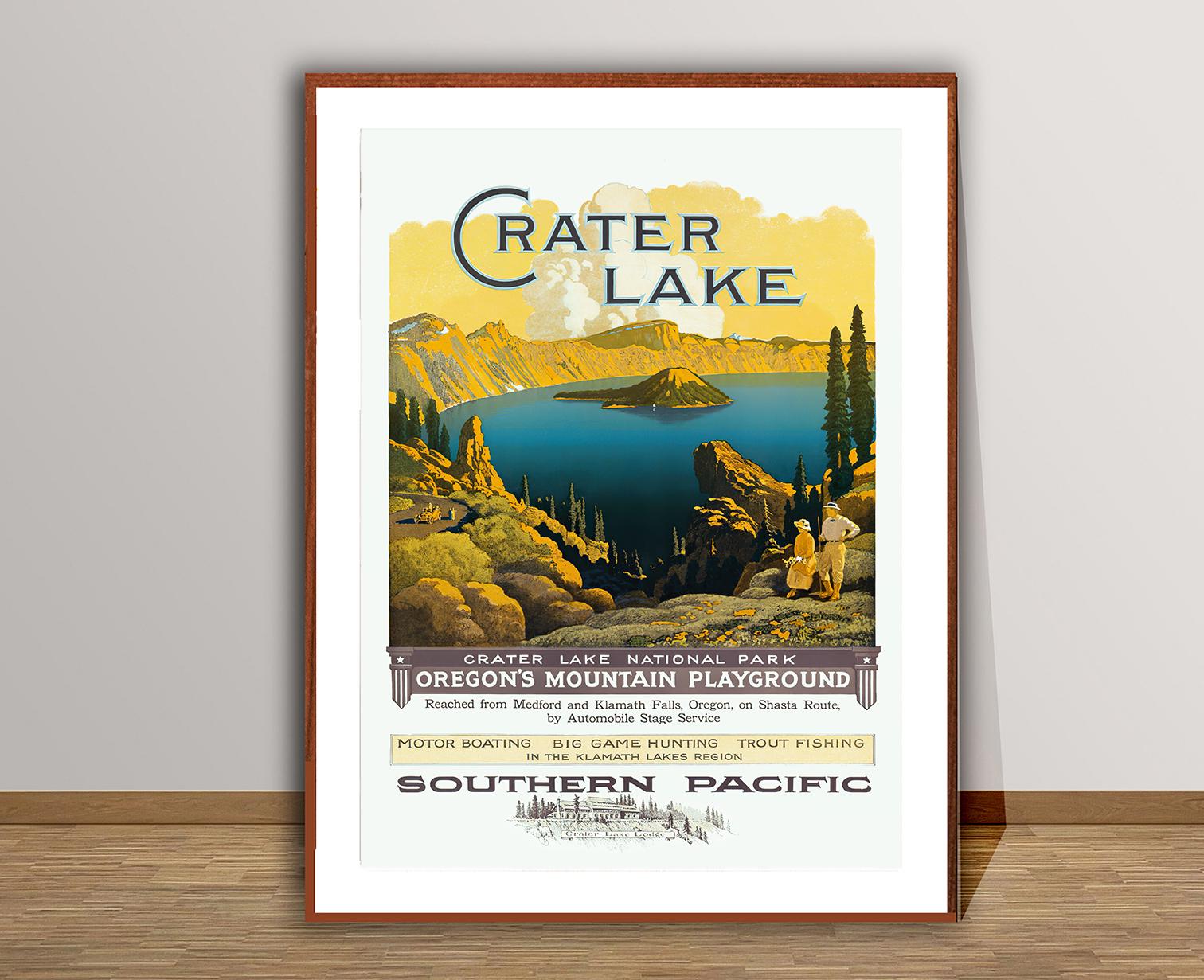 Crater Lake National Park Vintage Travel Poster - Poster Paper or Canvas Print