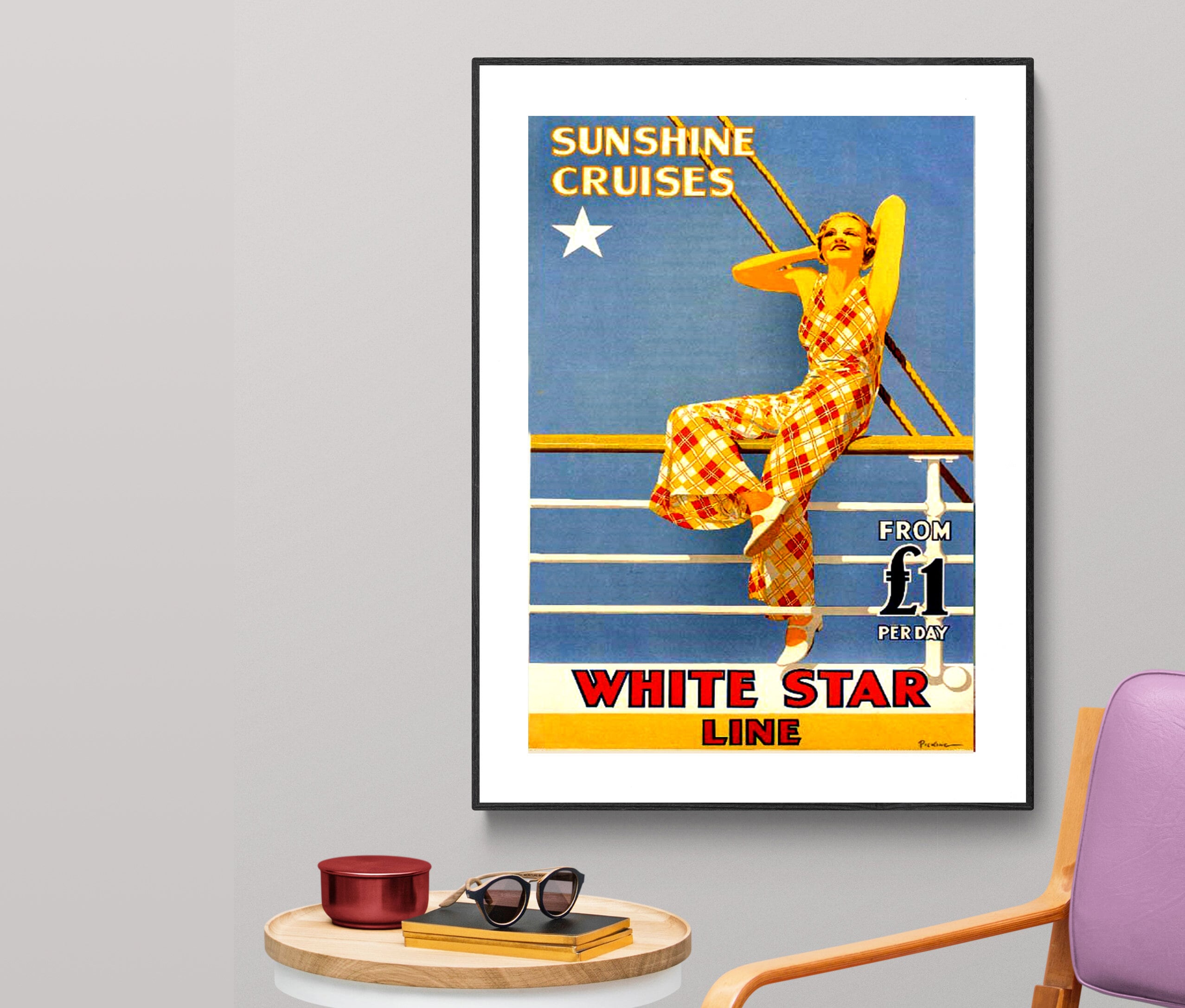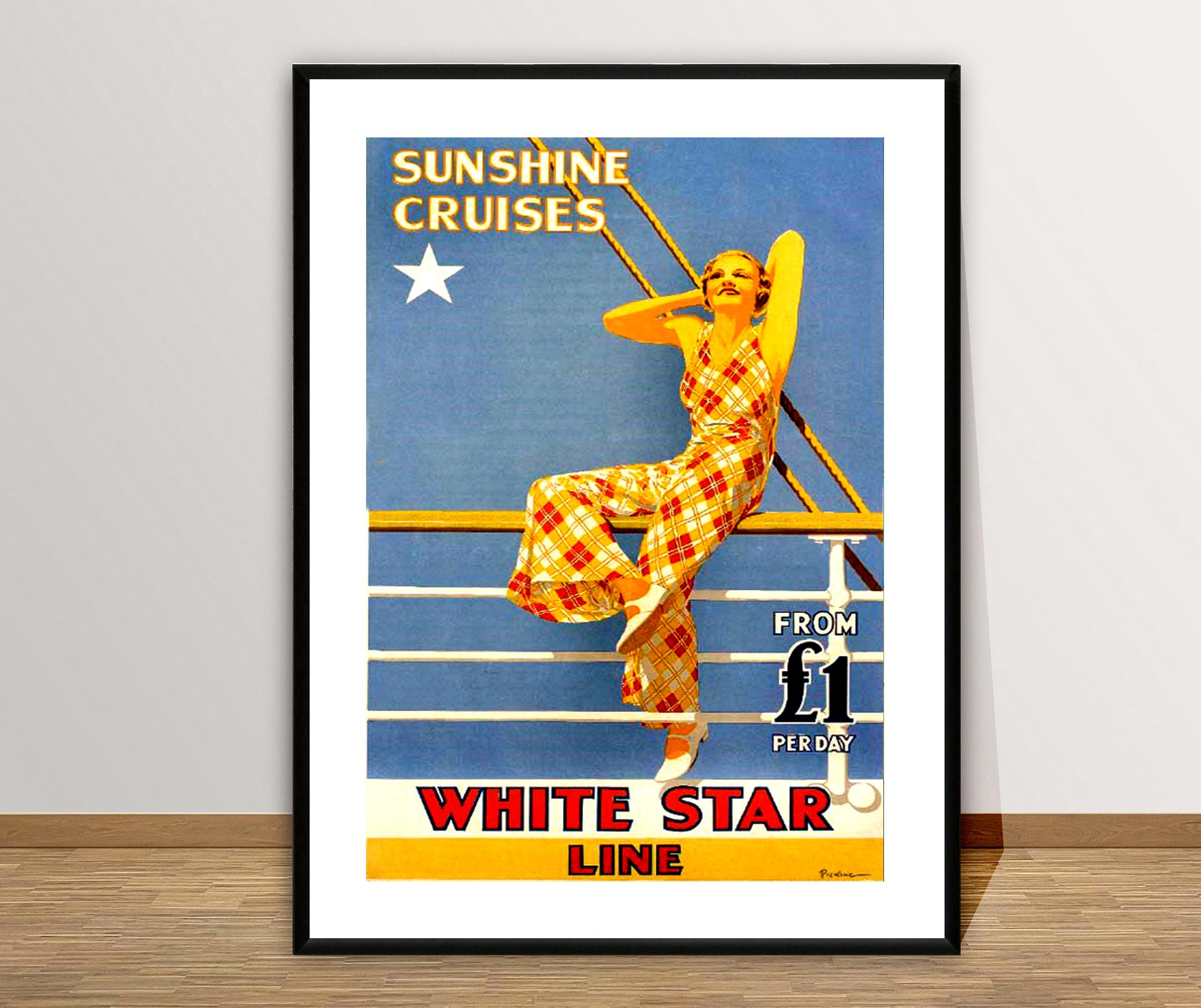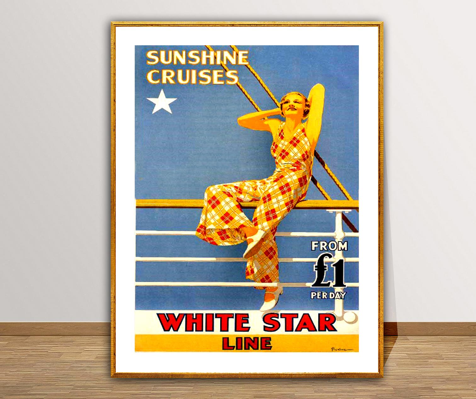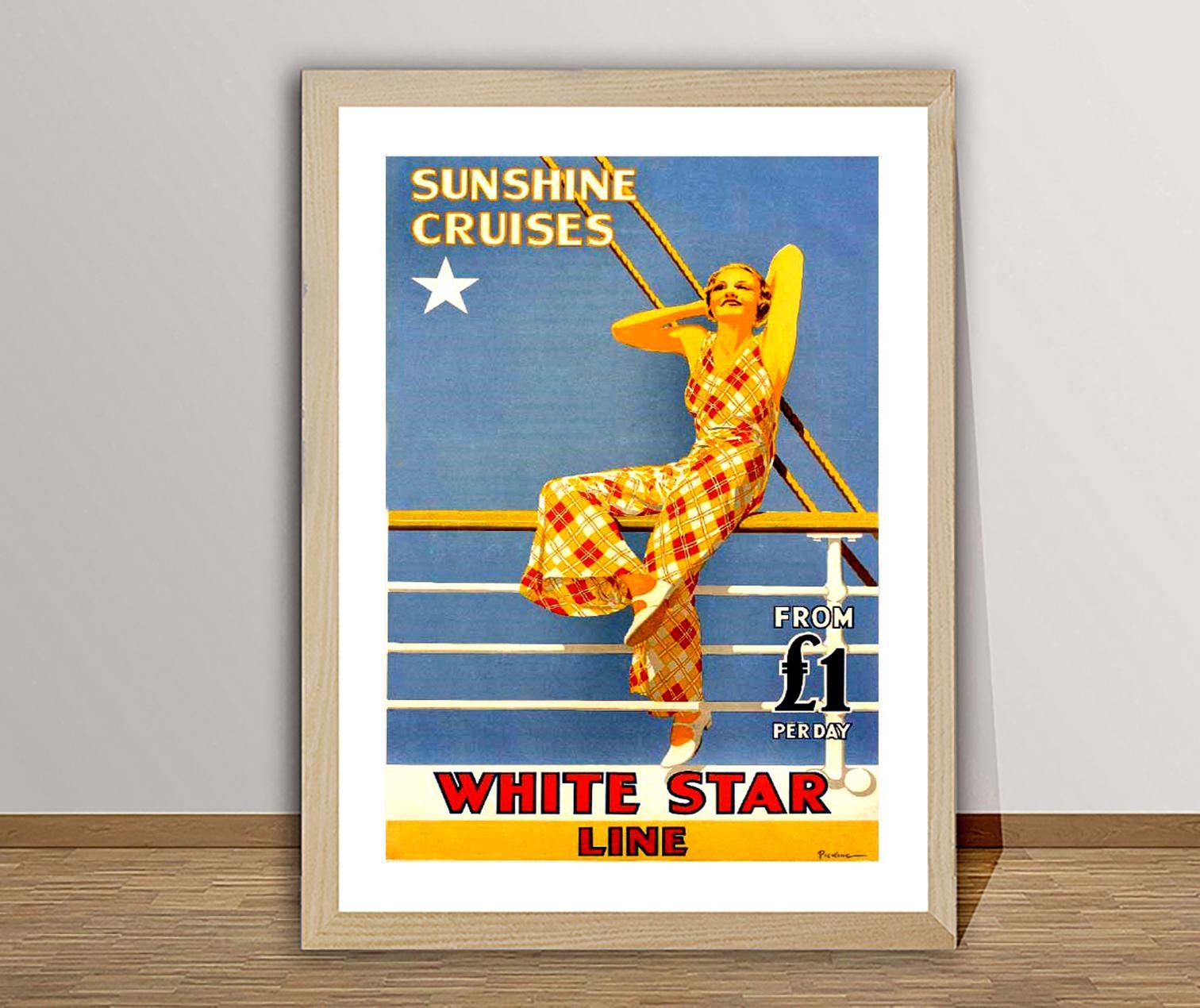 White Star Line Sunshine Cruises Vintage Travel Poster - Wall Art Print