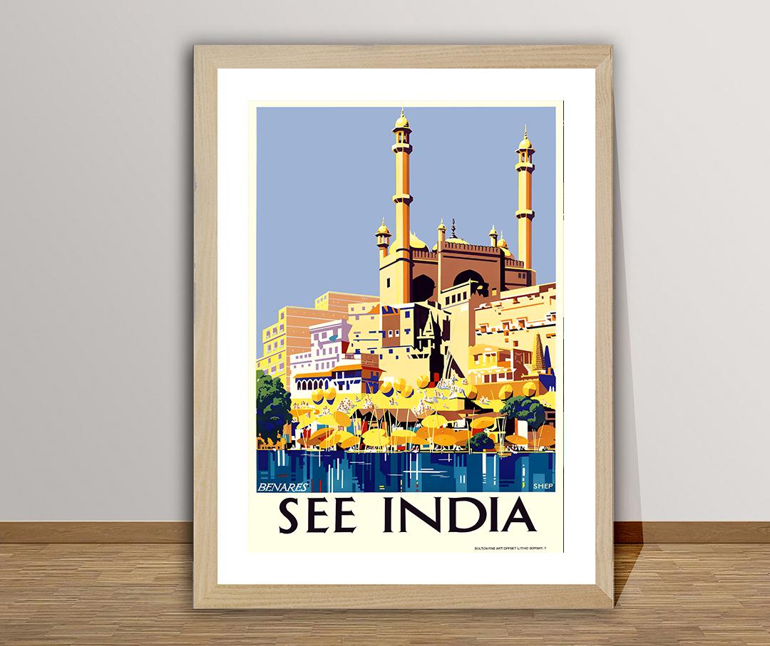 Vintage India Travel Poster: Benares Retro Wall Art