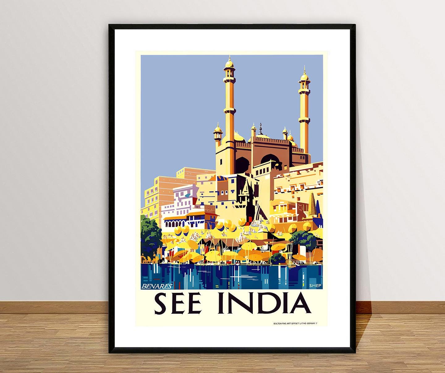 See India Benares Vintage Travel Poster - Poster Paper or Canvas Print / Gift Idea / Wall Decor