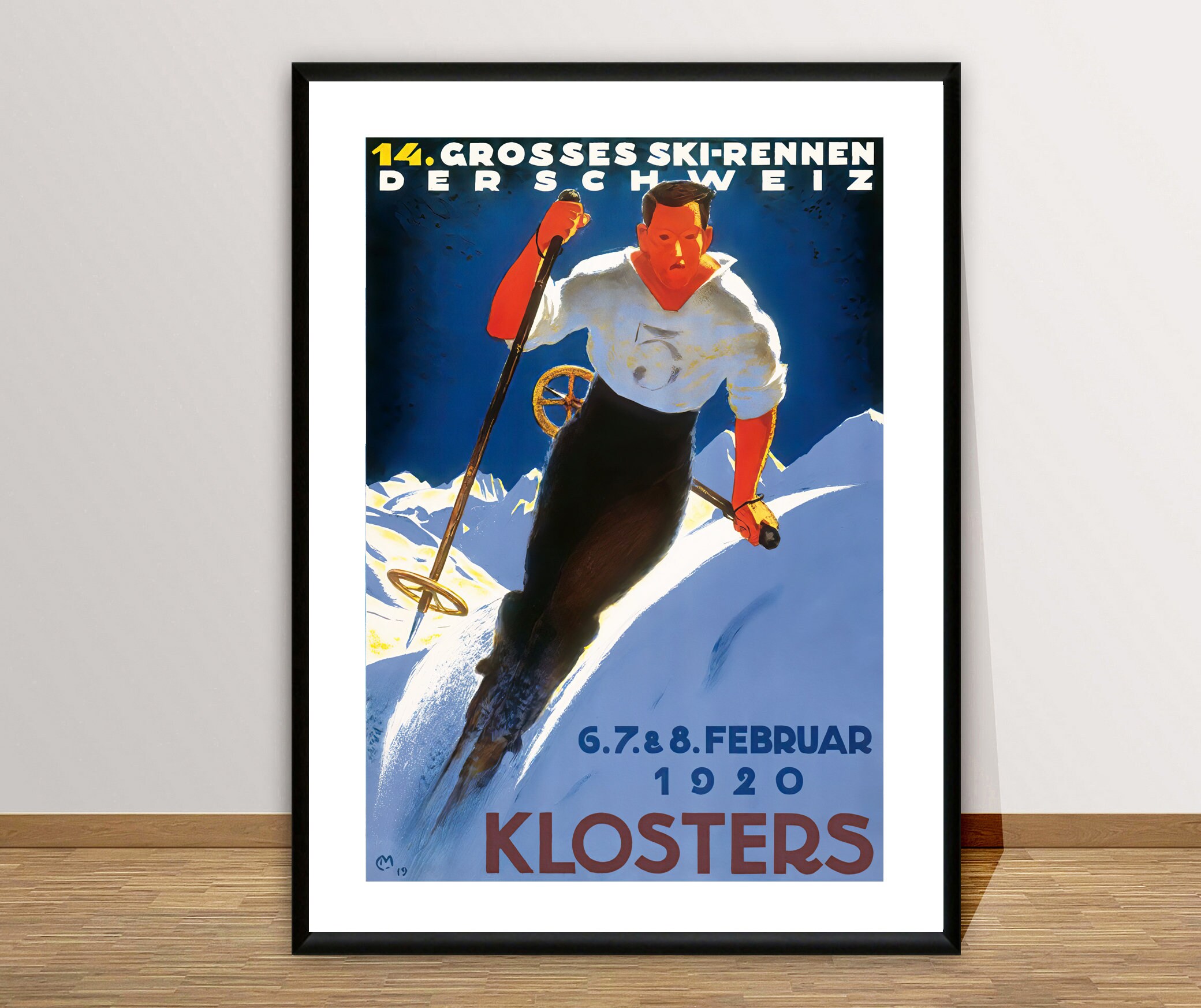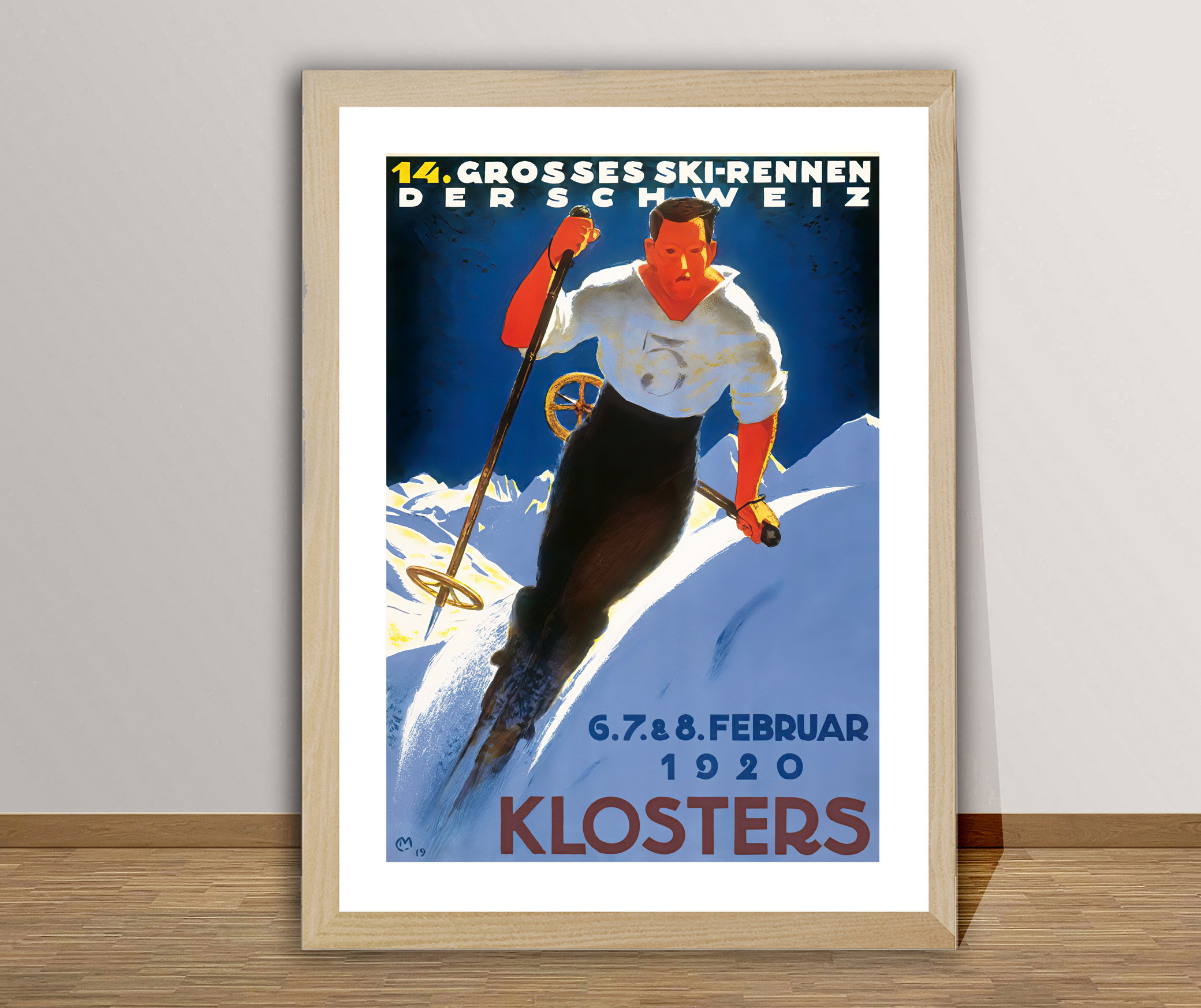 Klosters Gotschna Parsenn, Suisse Vintage Ski Poster - Poster Paper, Canvas Print / Gift Idea