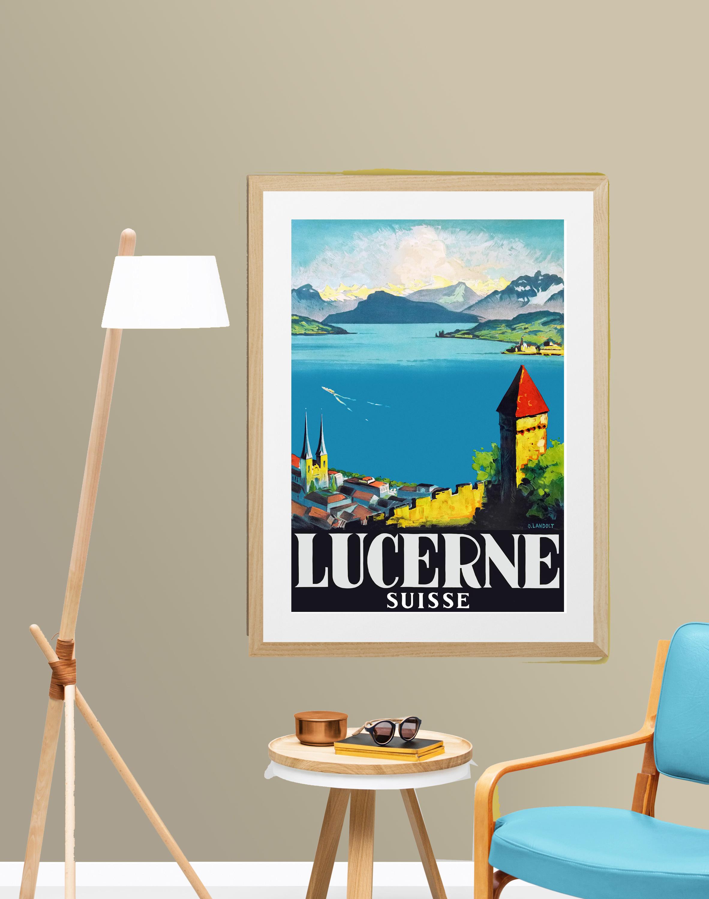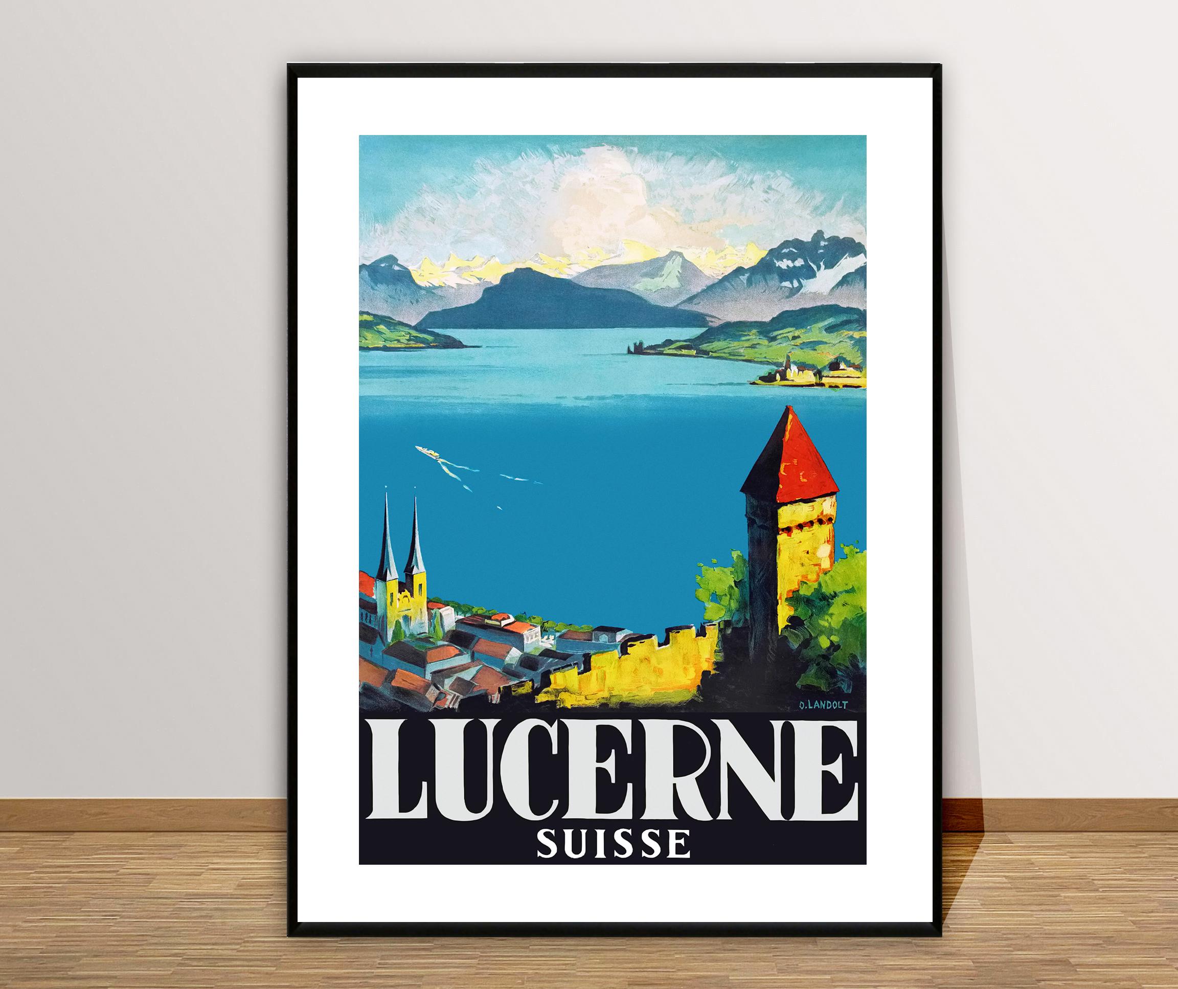 Lucerne Switzerland Vintage Travel Poster: Lake Lucerne Print